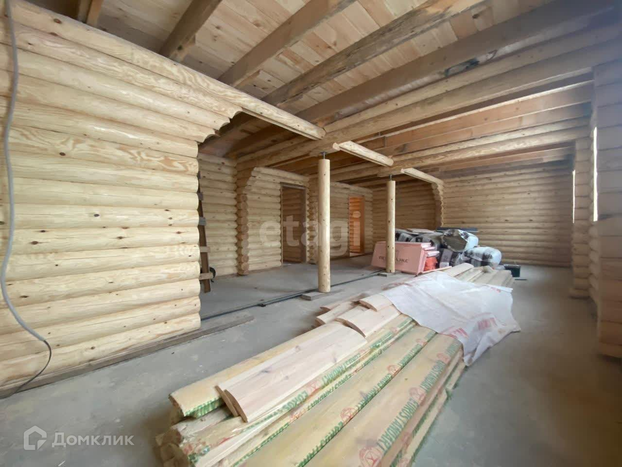 Ну и наконец-то его величество Дом в два этажа, площадью 230кв. м рубленый из настоящей Кировской Сосны идеального диаметра. Для его строительства были выбраны самые лучшие и качественные древесные стволы. Это элитный, «штучный» дом, который сочетает в себе прочность и абсолютную экологичность. Особенность данного дома: высокая теплоизоляция (ширина паза равна половине диаметра бревна), оригинальный внешний вид и экстерьер. Шлифовка была произведена в два этапа, снаружи дом был прогрунтован и пропитан двумя слоями элитной финской пропитки и грунта. Дом стоит на монолитном качественном фундаменте. Планировка дома сделана очень грамотно, на первом этаже большой зал комната два сан узла, банный комплекс. Второй этаж имеет 4 комнаты сан узел и прекрасный вид на сам участок и местность. В доме установлены отражающие теплосберегающие стеклопакеты. Дом очень тёплый.