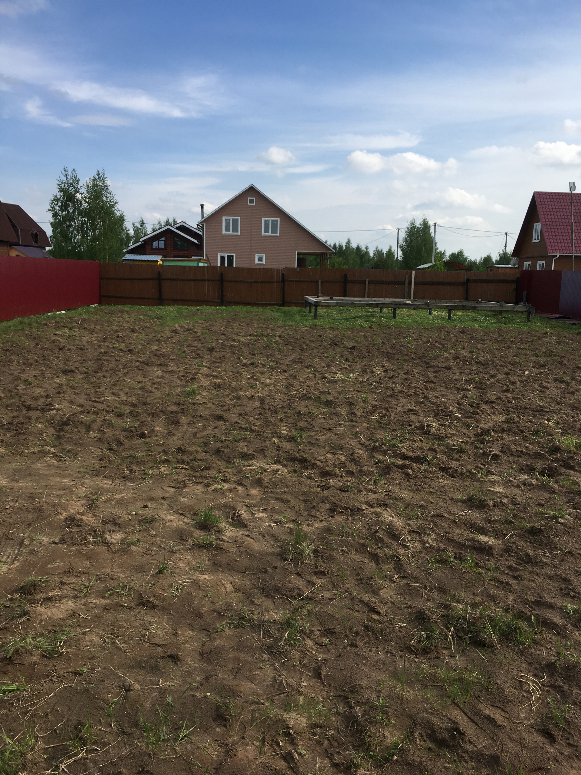 Земельный участок  прямоугольной формы, со всех сторон огорожен забором, имеется свайный фундамент под баню.