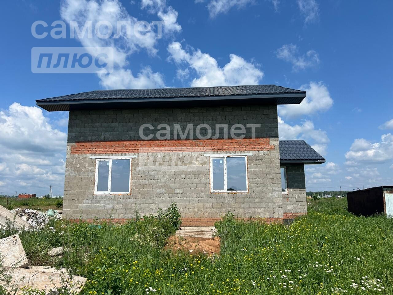 Дом из керамзитоблока, строился для себя в 2023 году. Окна пластиковые. Крыша металлочерепица. Фундамент ленточный, железобетонные плиты перекрытия