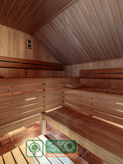 Место для гостевых комнат выделено в мансарде. В доме расположены также многофункциональная SPA-зона и комфортная сауна.