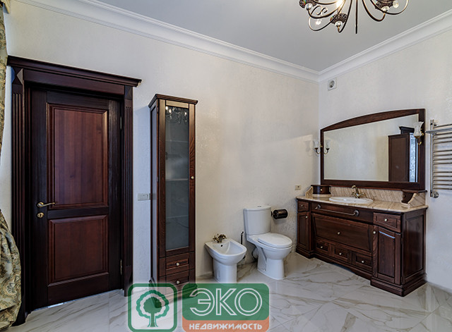 В доме - 5 спален, 5 санузлов, кабинет, кухня, столовая, каминный зал с двойным светом, прихожая , 3 холла, 3 кладовых, сауна, терраса с мангалом, постирочная, котельная, гараж на 2 машины, мастерская.
