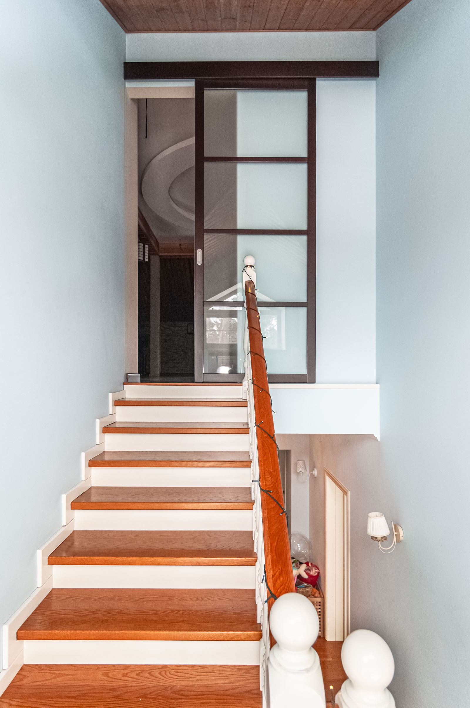 Второй этаж: кабинет, три спальни, гардеробная, прачечная, санузел, спортзал.