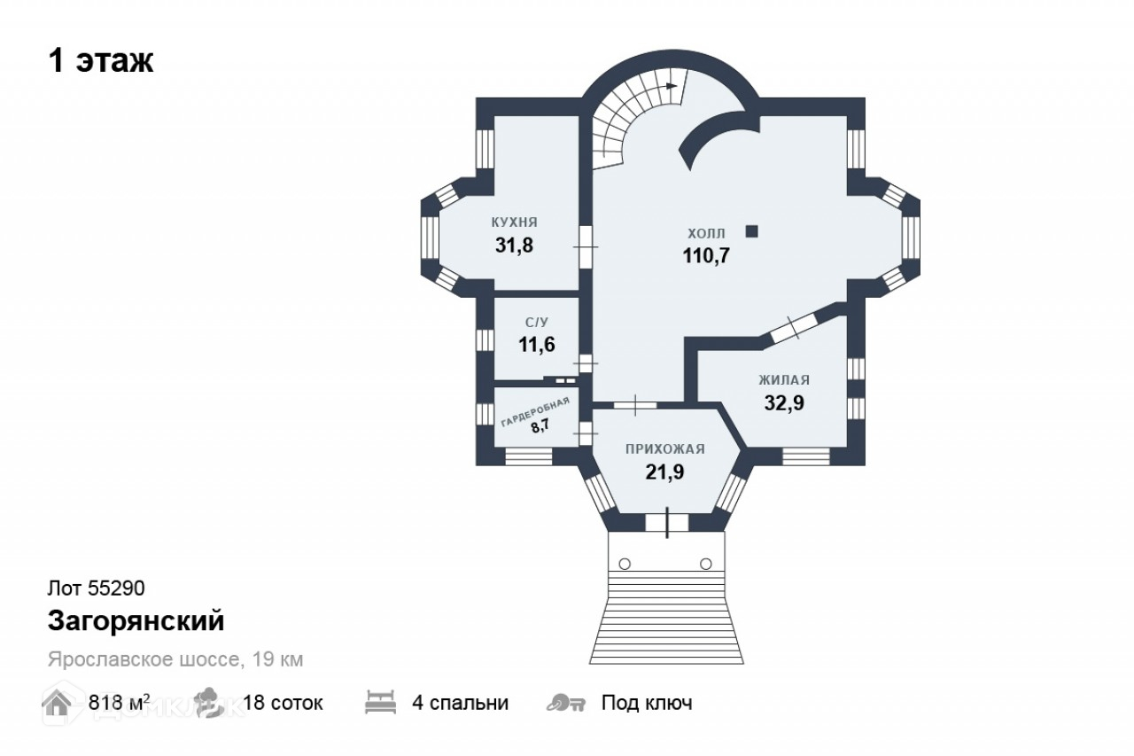 Общая площадь 818 м2