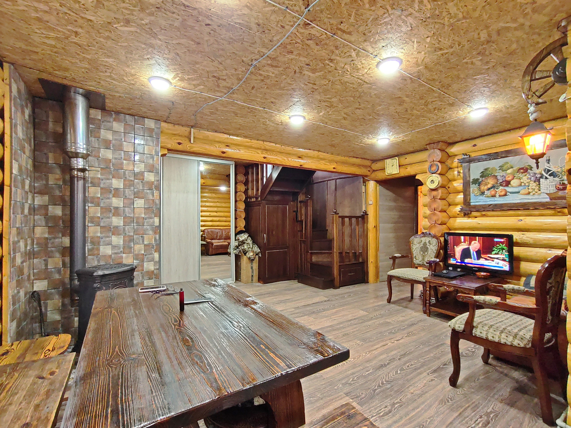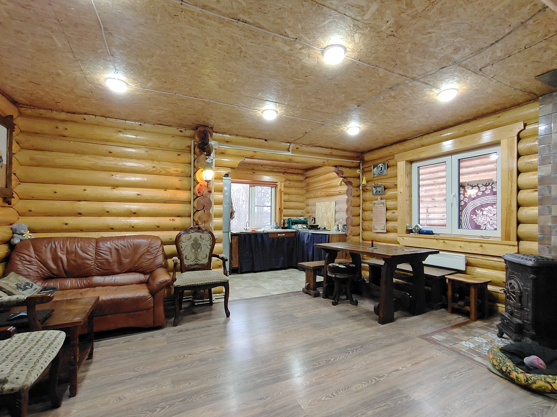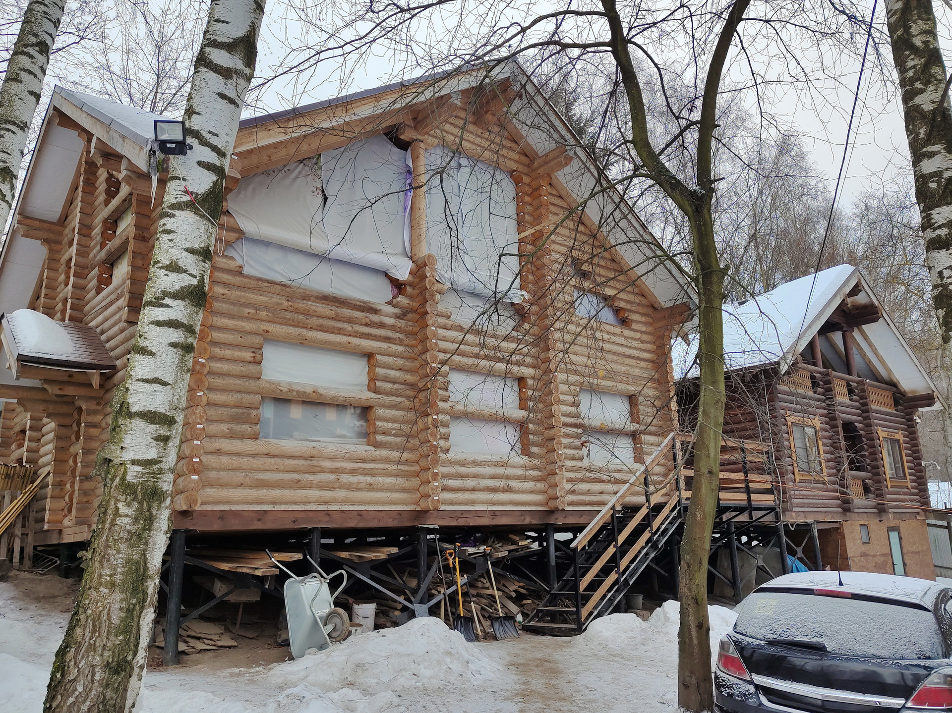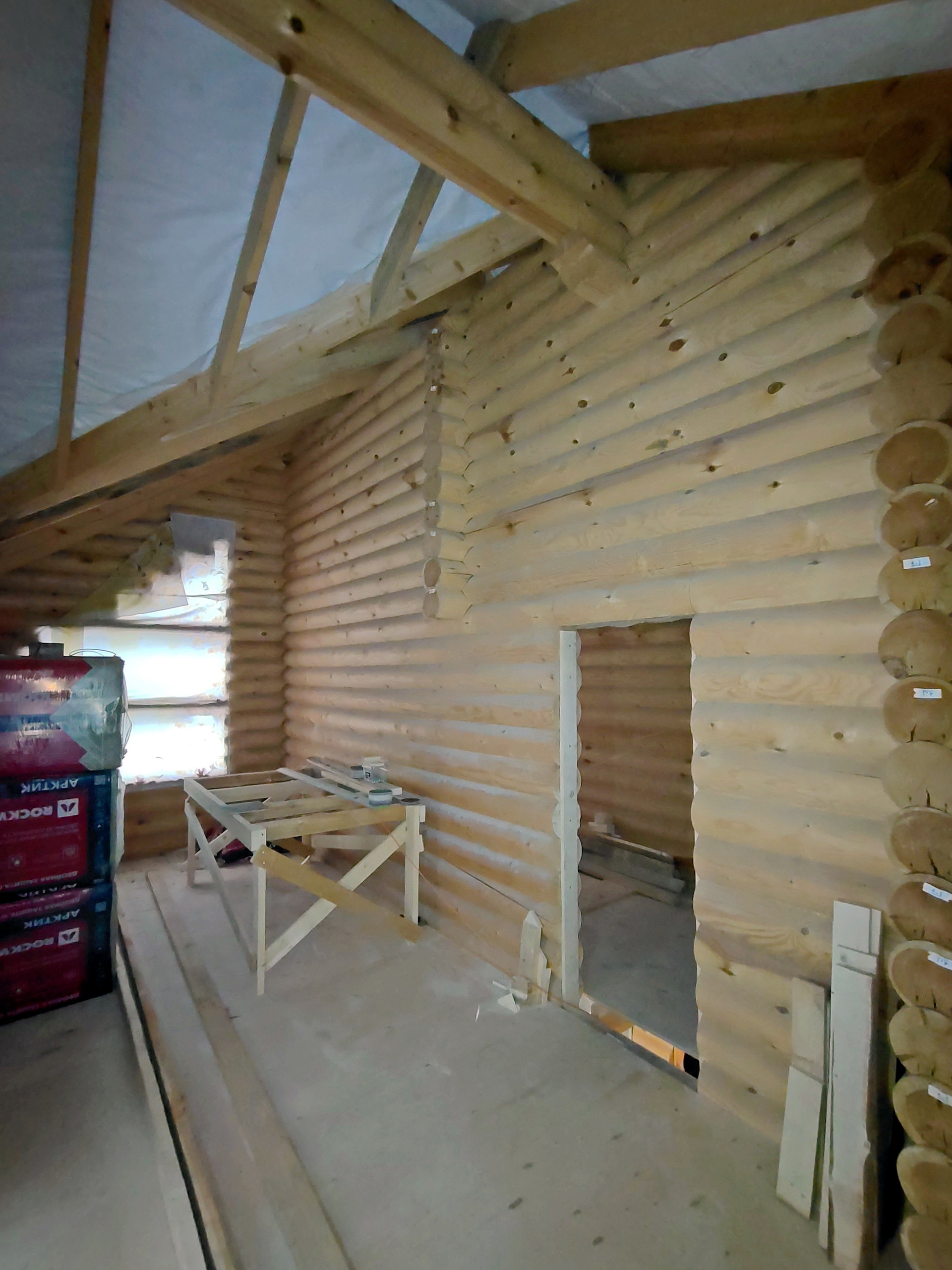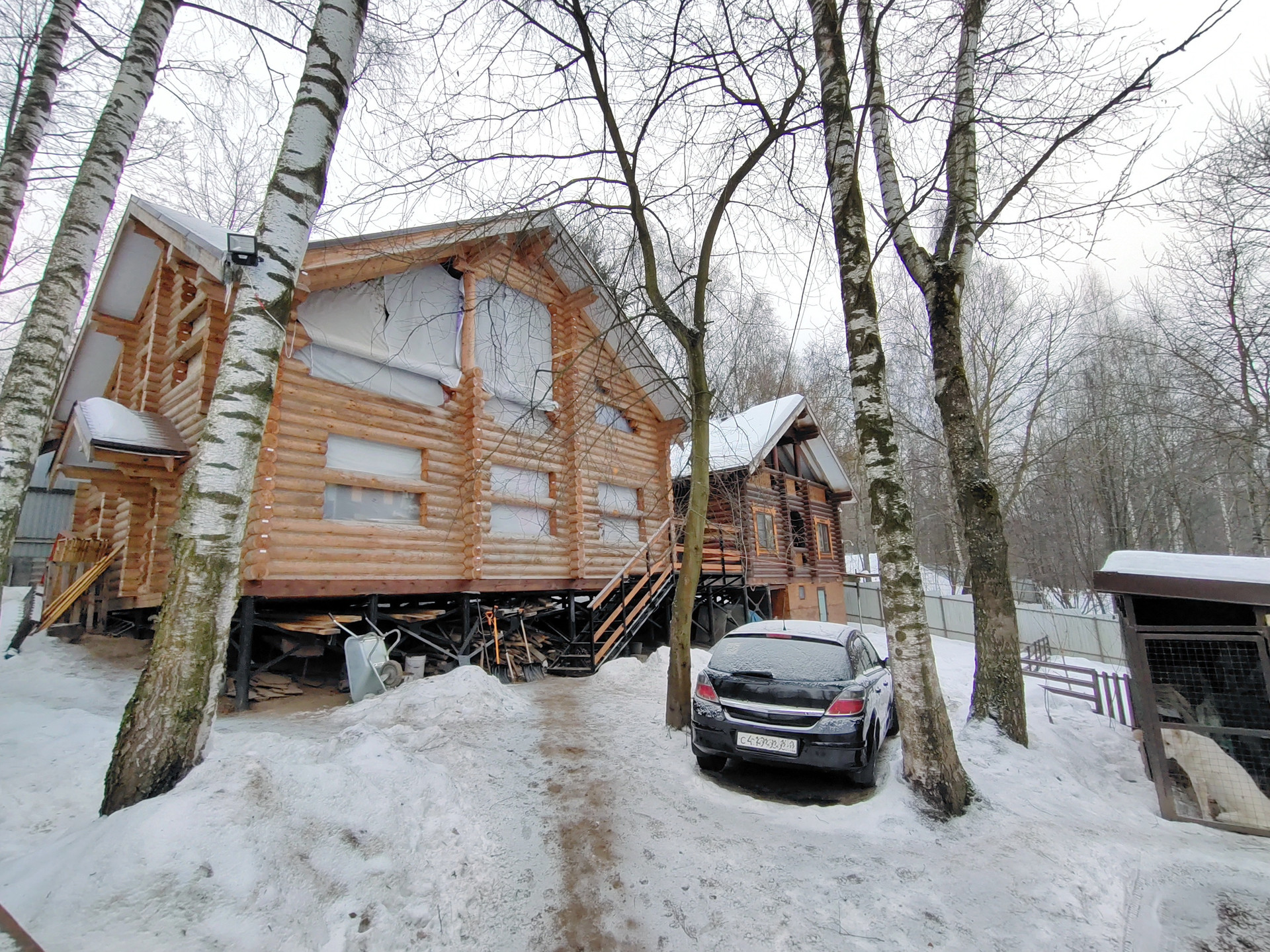 Дом 134м.кв. – готовность 30% - отстоявшийся сруб под мягкой кровлей, на него положено еще 15 кВ эл-ва, электросети ждут подачи заявки.