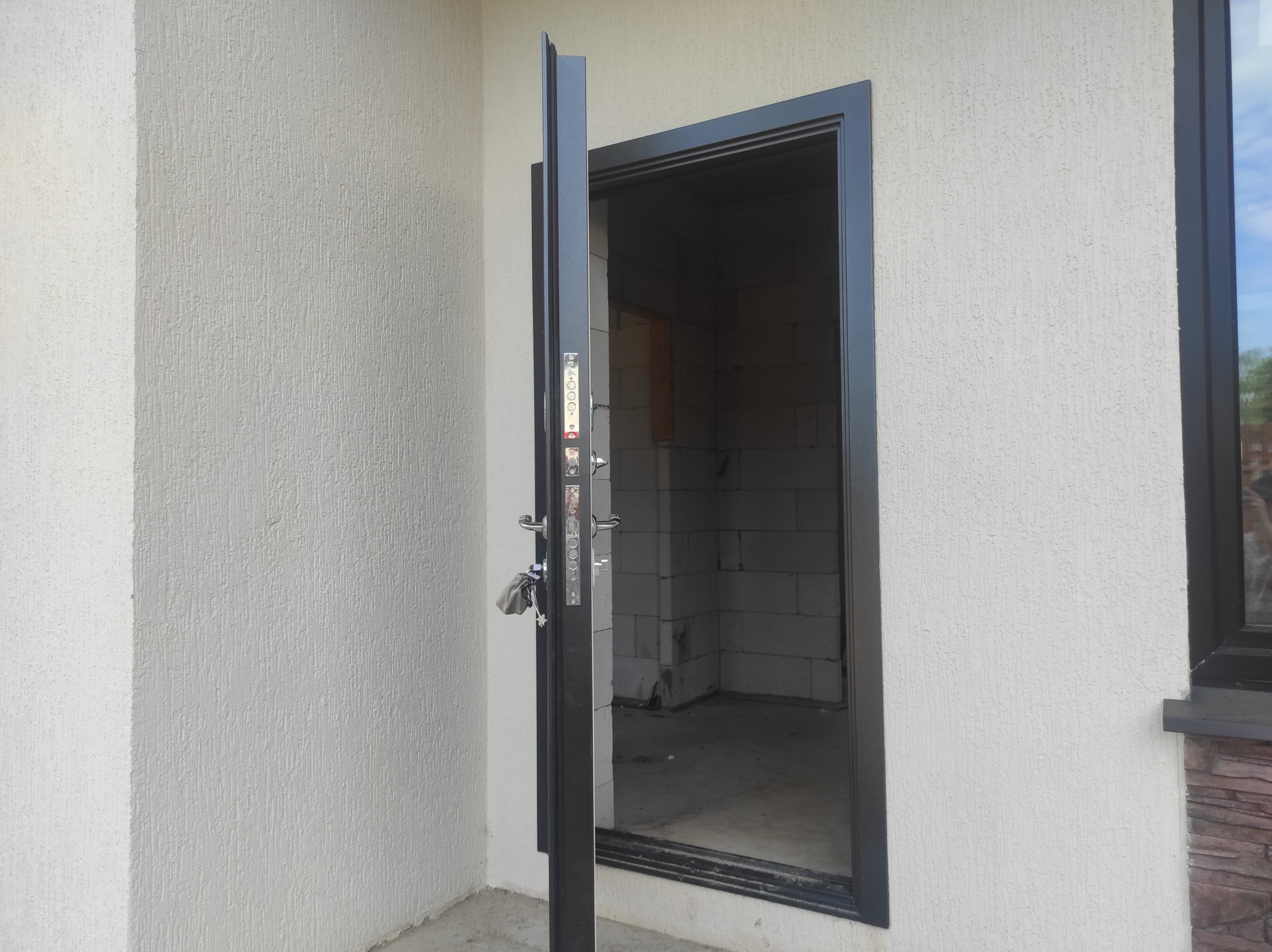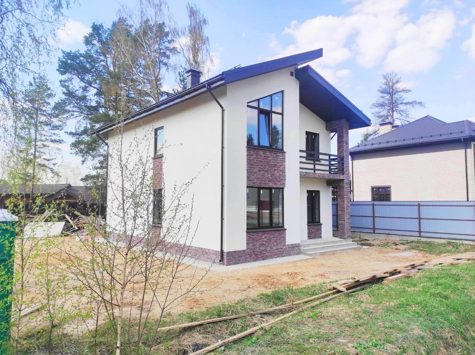 Дом без отделки, с уже подключенными к центральным коммуникациям газом, водоснабжением, канализацией и электричеством.