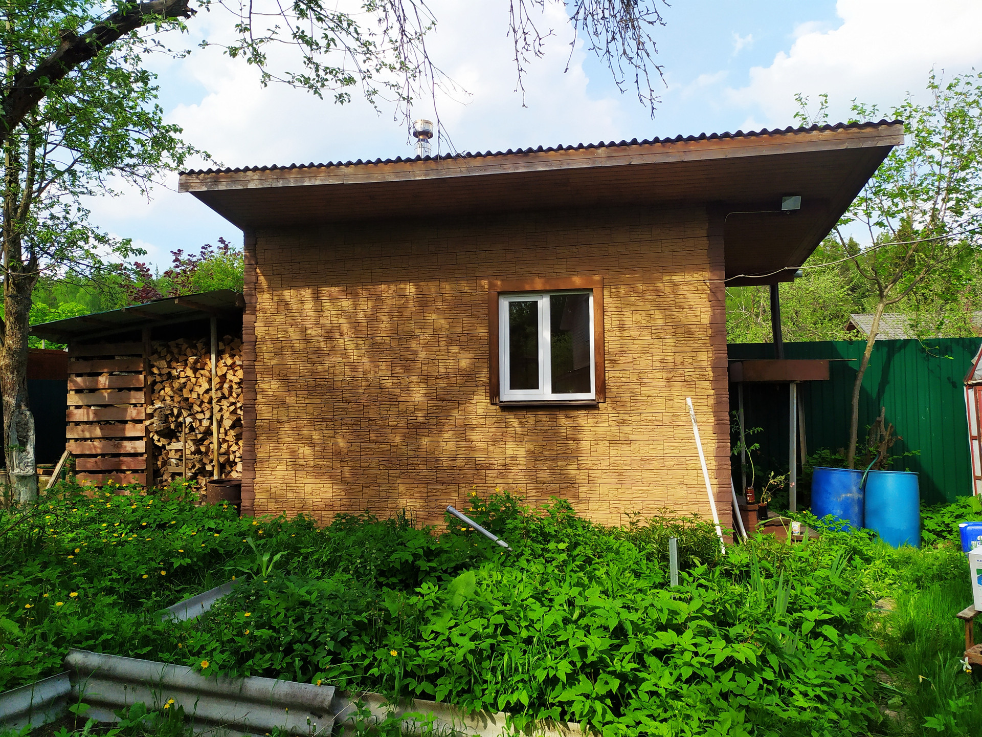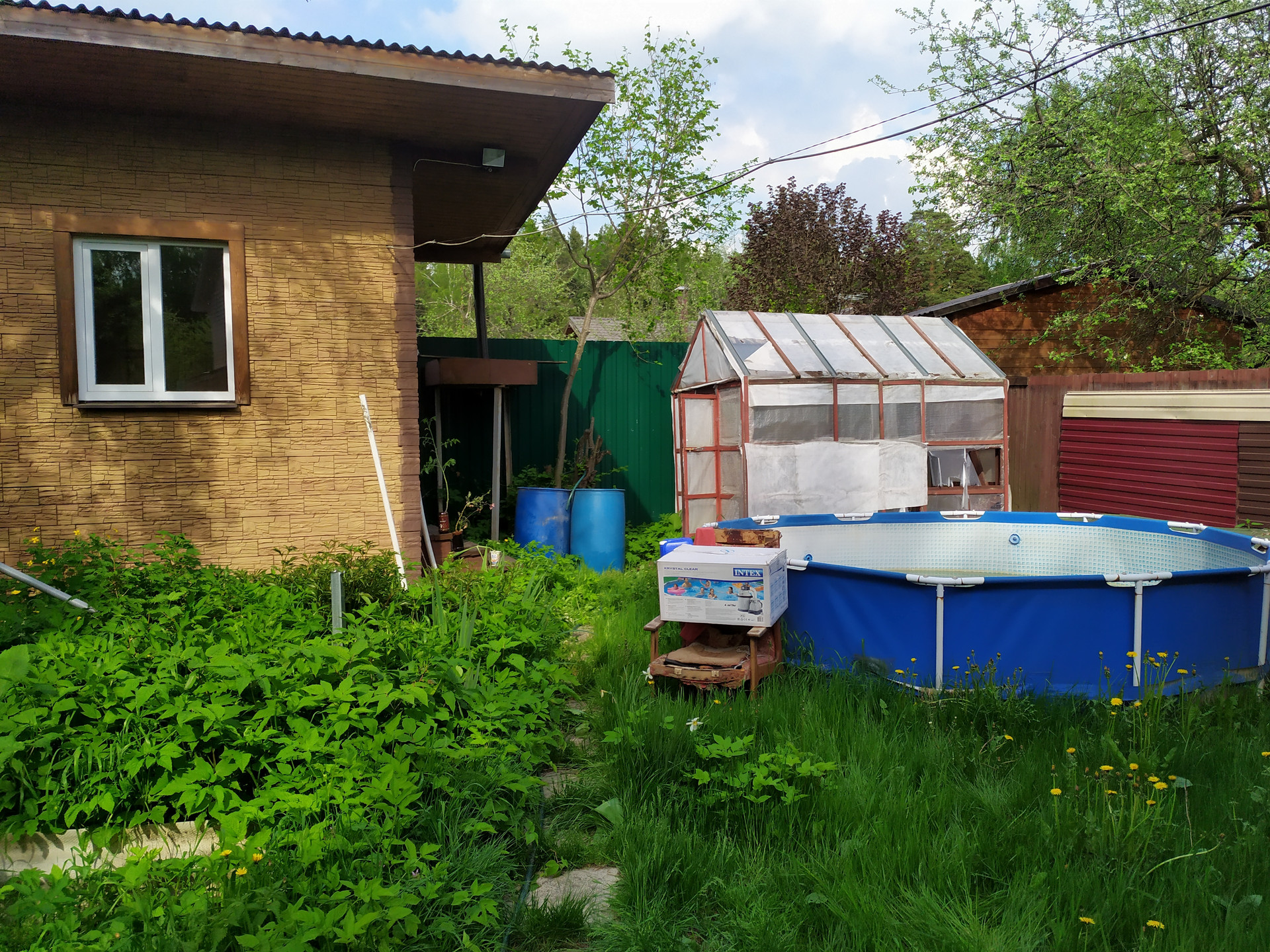 Во дворе есть баня с комнатой отдыха, бассейн, хоз.блок. небольшая теплица.