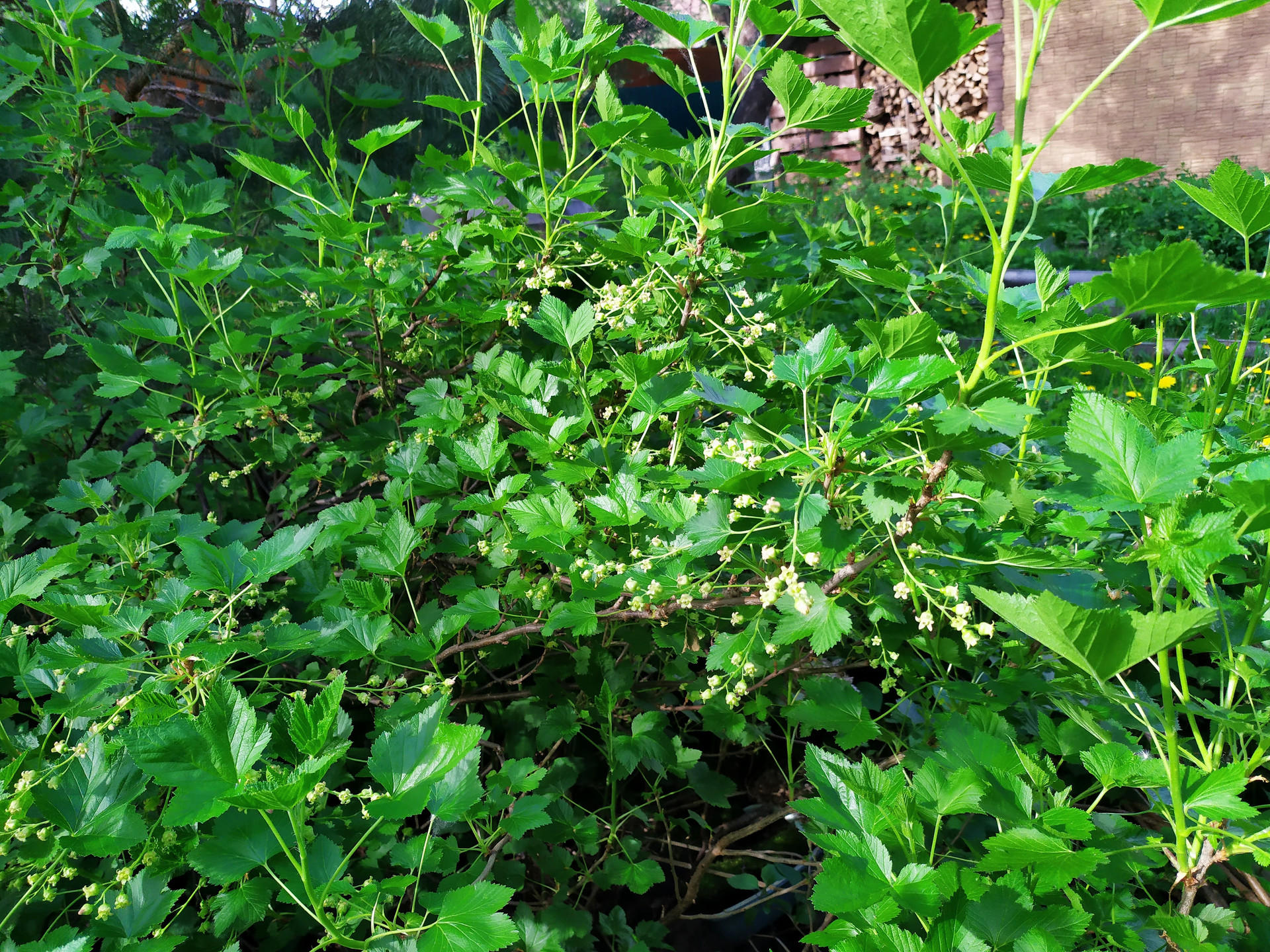 Грядки, кусты малины, смородины крыжовника, плодовые деревья.