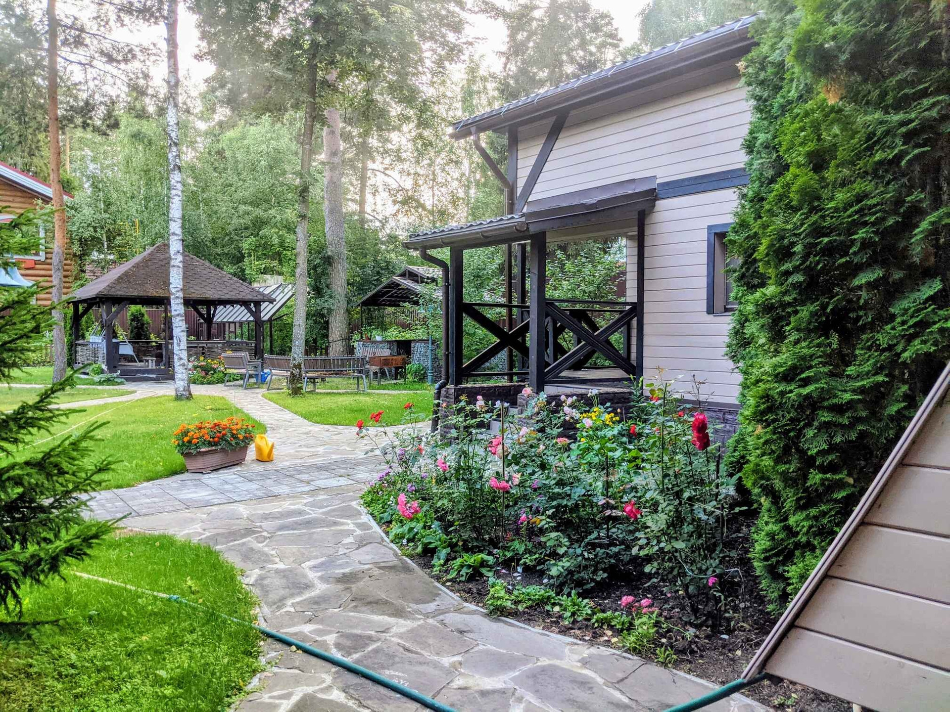 Продаётся мини-усадьба с вековыми деревьями и редким сочетанием уединения, большого облагороженного участка и уникальной транспортной доступностью. Идеальное место для круглогодичного проживания большой и дружной семьи. На 31 сотке земли (ИЖС) органично вписаны основной 225 м и гостевой 42м дома,навес на 2 Авто, двухэтажная баня 6,5х6,5м (на втором этаже жилая зона)), баскетбольная площадка, отдельный крытый тренажёрный зал,отдельная летняя кухня, две отдельно стоящие беседки (одна из которых с открытым очагом). Участок расположен в огороженном микрорайоне с собственным прудом и футбольной/хоккейной площадкой. ЖД станция в 5 минутах ходьбы, откуда вы гарантированно доедите до центра Москвы за час. Этот дом-идеальный вариант для тех, кто хочет жить на свежем воздухе, рядом со всей инфраструктурой, и работать в Москве. Дом строился для себя без экономии на материалах и подрядчиках,с соблюдением всех рекомендаций и норм. Великолепный дом построен по всем правилам из бревна 20х20, (первые 4 кольца лиственница, остальное сосна), качественно утеплён, обшит сайдингом, внутри зашит гипсокартоном, крыша-металлочерепица, окна ПВХ, цоколь выложен декоративным кирпичом, фундамент ленточный, глубиной более 2 метров, на который уложена бетонная плита. Коммуникации: электричество -15 КВт, газ-магистральный, вода-скважина+ (на участке 2 колодца для полива), канализация-современный и технологичный септик. Дом: 1 этаж-холл, гостиная с камином, кабинет, мастер-спальня с отдельным санузлом, душевая с мини-сауной, детская, бойлерная, хорошо оборудованная кухня с выходом на веранду; 2 этаж- холл, детская, санузел, две спальни. Звоните, приезжайте, вы влюбитесь в это место.