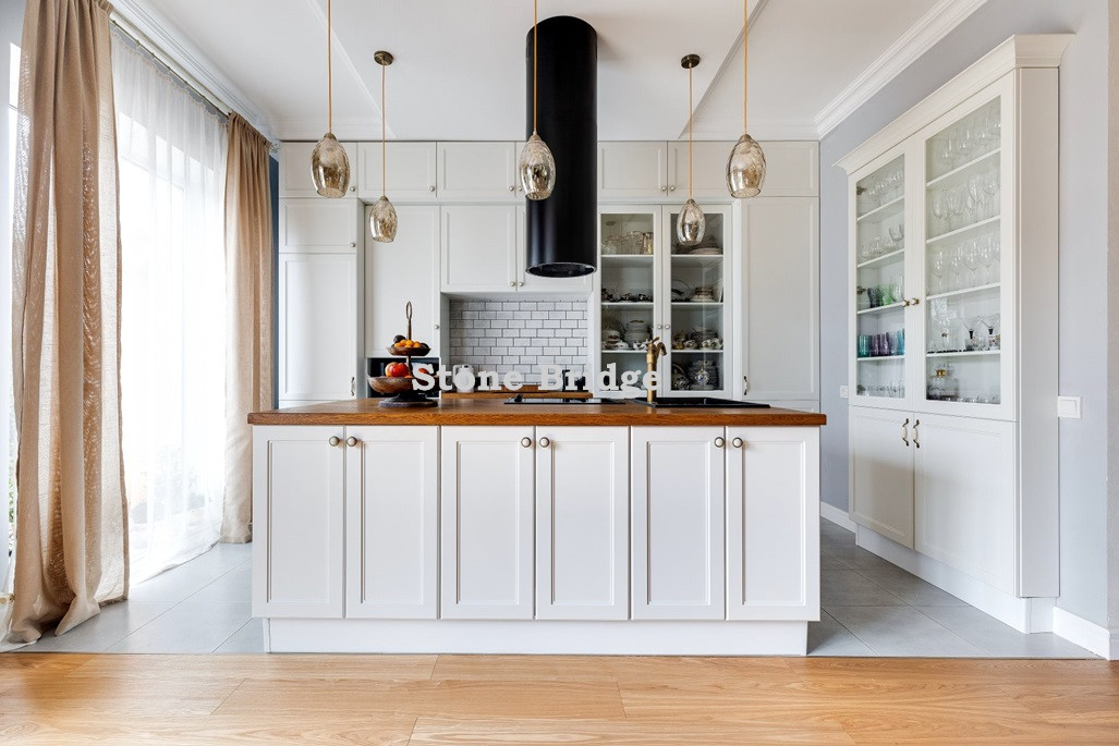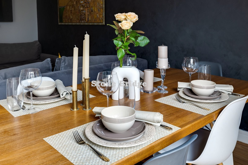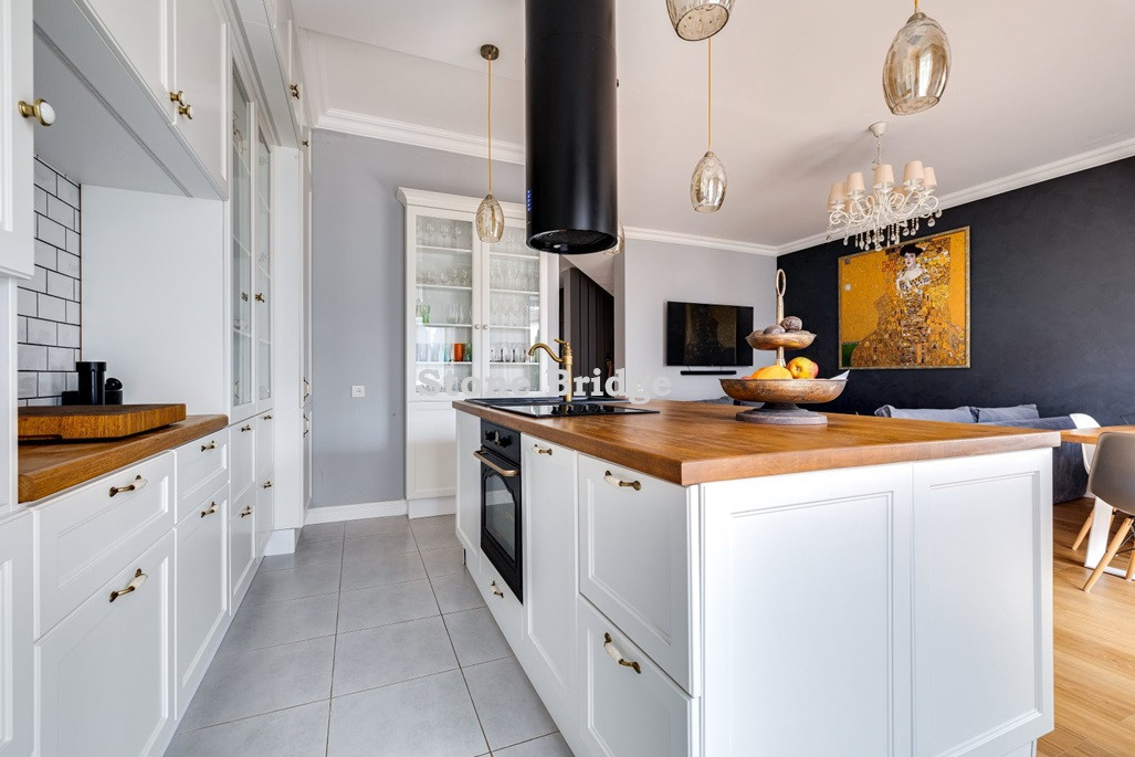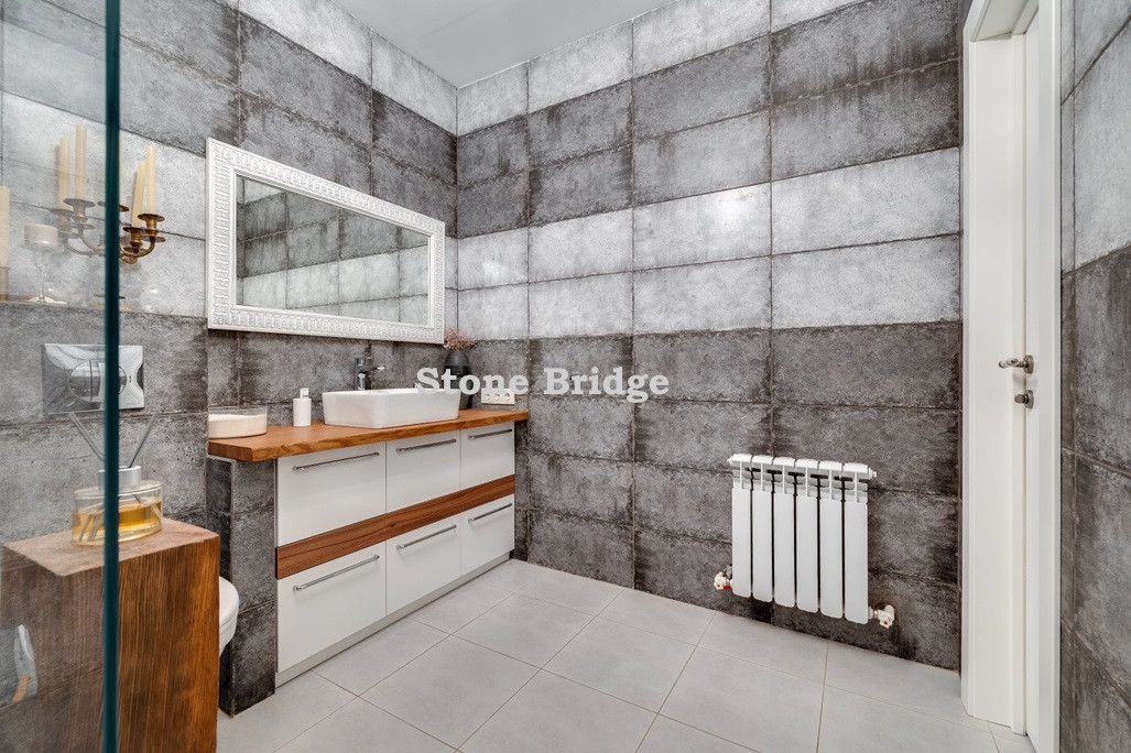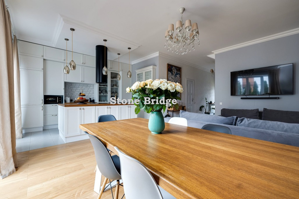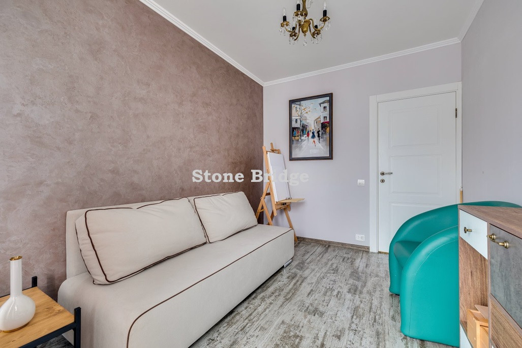 На первом этаже и в двух спальнях - французские окна от пола до потолка. Выполнен дизайнерский ремонт, использованы качественные натуральные материалы. Высокие потолки, хорошее естественное освещение, ощущение простора.