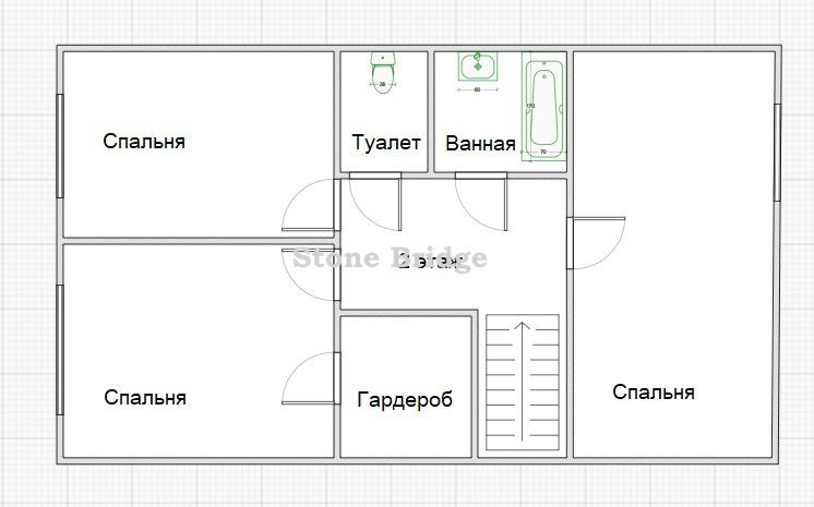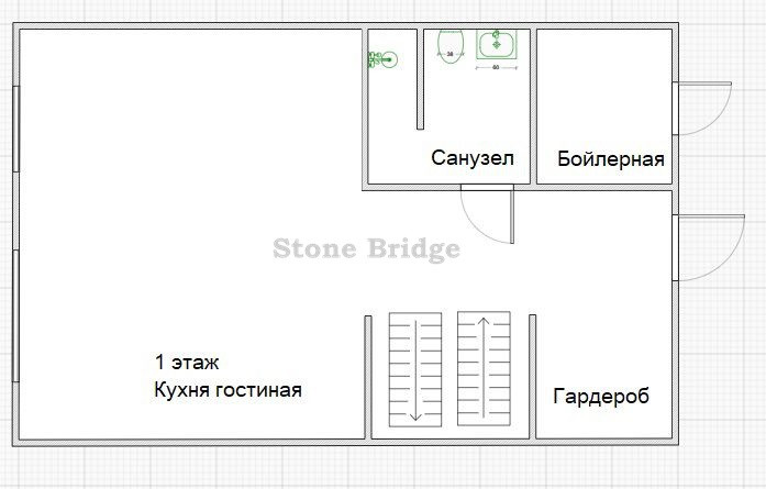 В доме два этажа. Есть выход на мансардный этаж, который при желании можно сделать эксплуатируемым и увеличить площадь. Первый этаж - холл, санузел с душем и гостиная, объединенная с кухней. Второй этаж : 3 спальни (главная спальня с гардеробной комнатой), туалет, ванная.