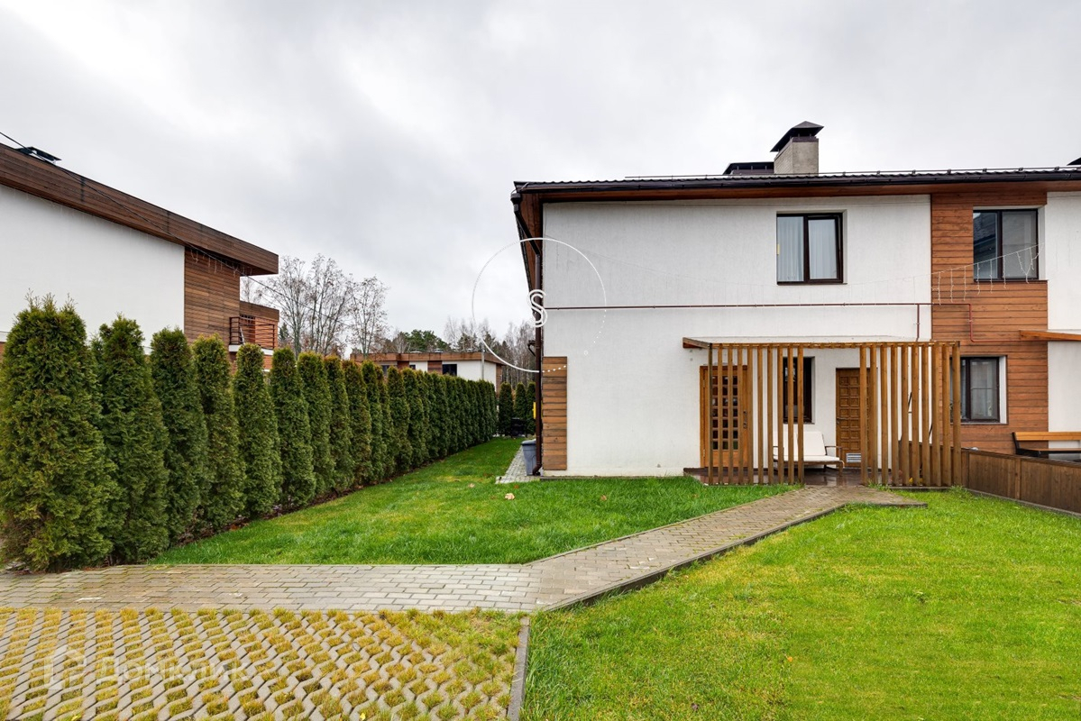 Продается таунхаус площадью 128 кв. м. на участке 4 сотки в КП Спасское в 29 км. от МКАД по Ярославскому шоссе. На участке газон, туи по периметру, эко-парковка на две машина, мангальная зона, открытая терраса для отдыха. В доме два этажа. Есть выход на мансардный этаж, который при желании можно сделать эксплуатируемым и увеличить площадь. Первый этаж - холл, санузел с душем и гостиная, объединенная с кухней. Второй этаж : 3 спальни (главная спальня с гардеробной комнатой), туалет, ванная. На первом этаже и в двух спальнях - французские окна от пола до потолка. Выполнен дизайнерский ремонт, использованы качественные натуральные материалы. Высокие потолки, хорошее естественное освещение, ощущение простора. Коммуникации - центральная канализация и водопровод, газовое отопление (есть также резервное электрическое). Все технические приборы расположены в бойлерной. Интернет, роутеры разнесены по двум этажам. Инфраструктура коттеджного поселка - прогулочные зоны, детские площадки, волейбольное поле, пруд, сауна, асфальтированные дороги и освещение, КПП с круглосуточной охраной. В 7-ми минутах ходьбы - ж/д станция, школа, детский сад, амбулатория, магазины, ретрит-центр, тренажерный зал, парикмахерская, рынок, кофейня, аптека, ветклиника и ветмагазин и др. Электричка до центра Москвы (Ярославский вокзал) идет от 40 мин до 1 ч. 05 мин. Лот 4143