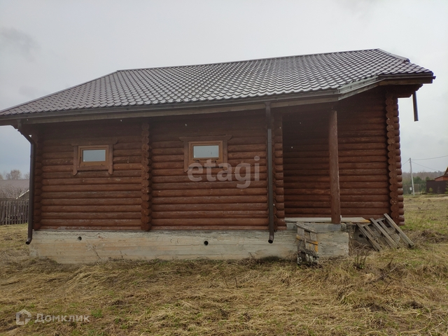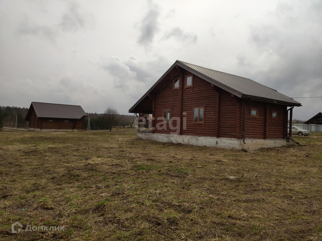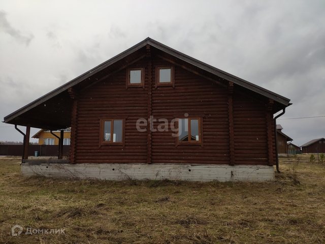 В продаже дом 137 м2 (площадь с террасой 155 м2) из оцилиндрованного бревна без отделки на просторном ровном прямоугольном участке 18 соток. Находится в живописном коттеджном поселке Земляничная поляна (удаленность от города 30 км).