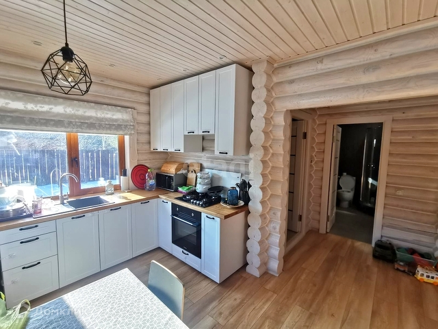 В доме проведен газ, отопление газовое, централизованная вода от общей поселковой скважины, канализация - септик. В доме два кондиционера, фильтры воды, спутниковое TV, вайфай в доме и на участке.