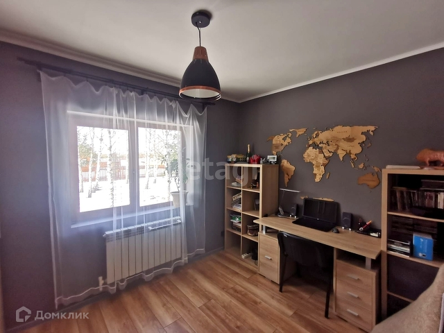 На втором этаже две комнаты (спальня и детская), есть гардеробная. В детской и в гардеробной пред чистовая отделка. Требуется уложить ламинат и покрасить стены по вашему вкусу.