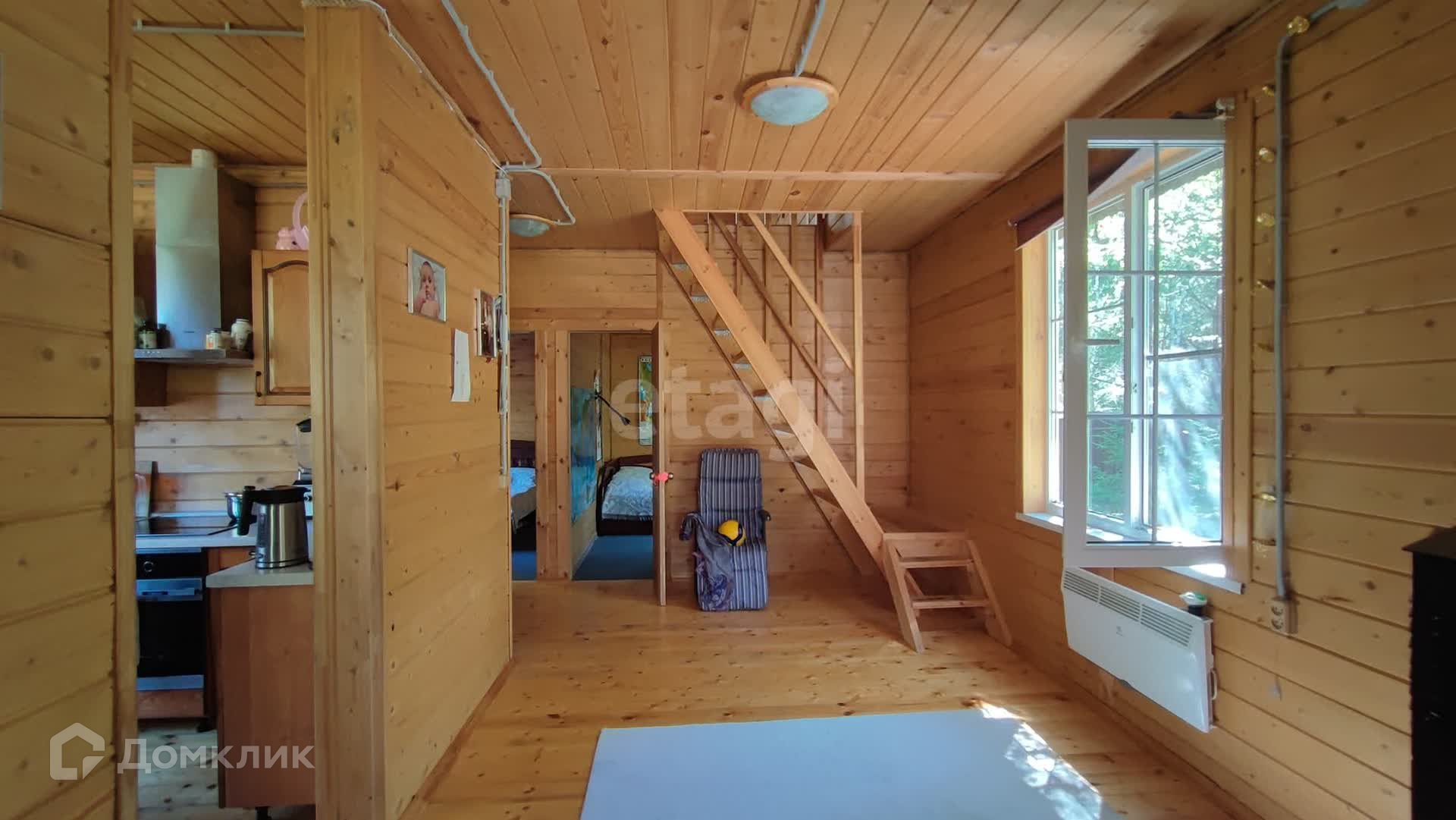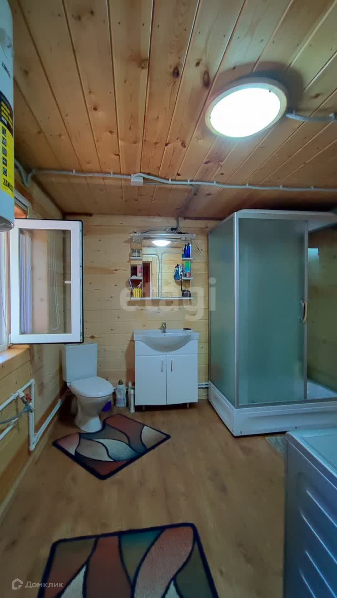 Дом общей площадью 82,6 м2(6х9м), 2 этажа, 3 спальни, кухня, столовая с камином, большая застекленная веранда, санузел с душевой кабиной. В доме центральная круглосуточная вода от поселковой скважины глубиной 82м, электричество 15 кВт, газ по границе участка. Отопление электрическое + камин (отапливается Руфами).