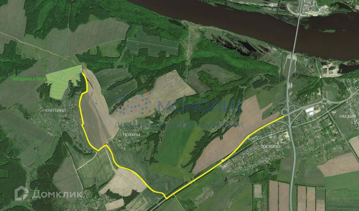 рядом с д. Поляны и д. Охотино, напротив д. Бурцево, в дачном поселке "Звездная аллея".