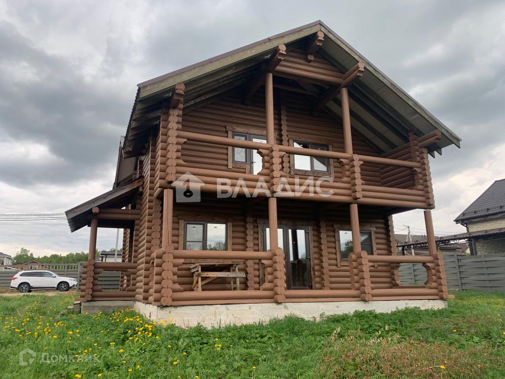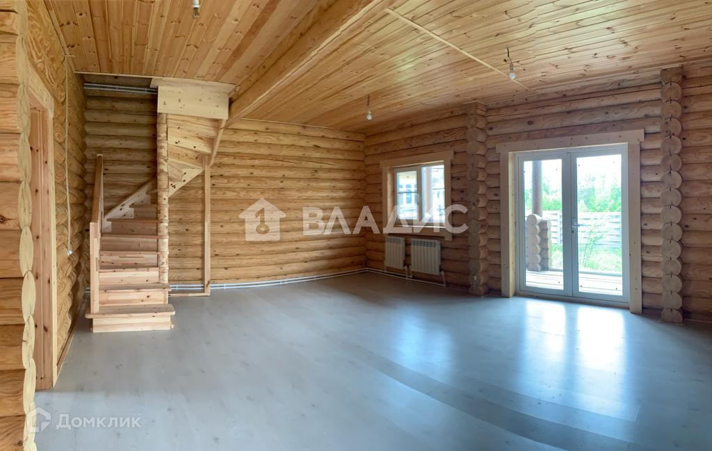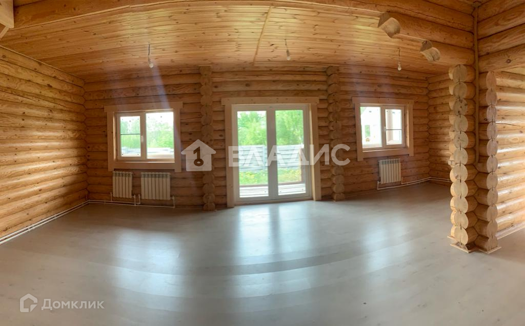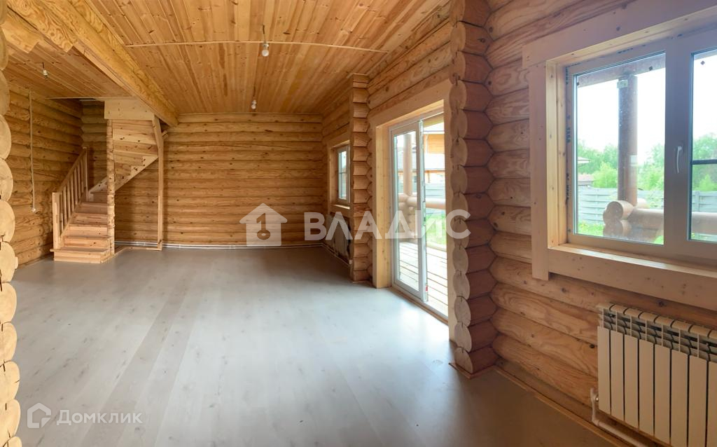 Прекрасный дом выполнен из бревна , что сохраняет экологичность дома.