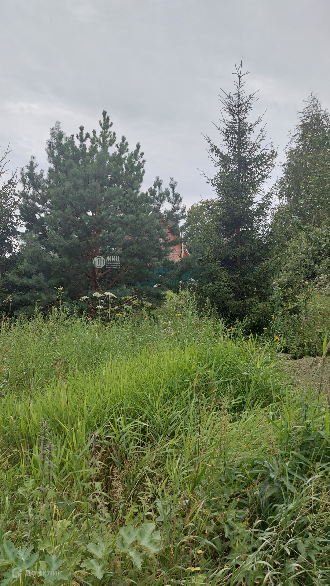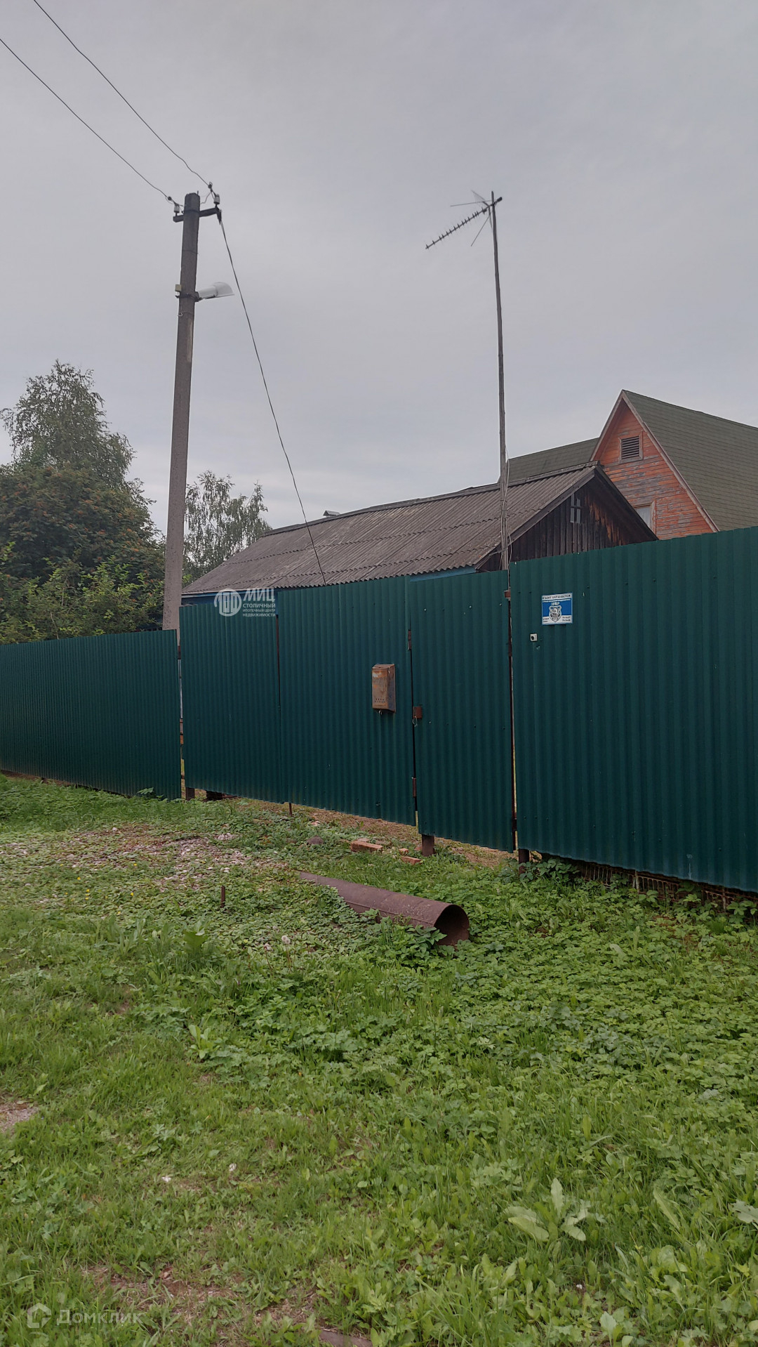 Участок огорожен забором из крашеного с двух сторон профнастила, с железными лагами.