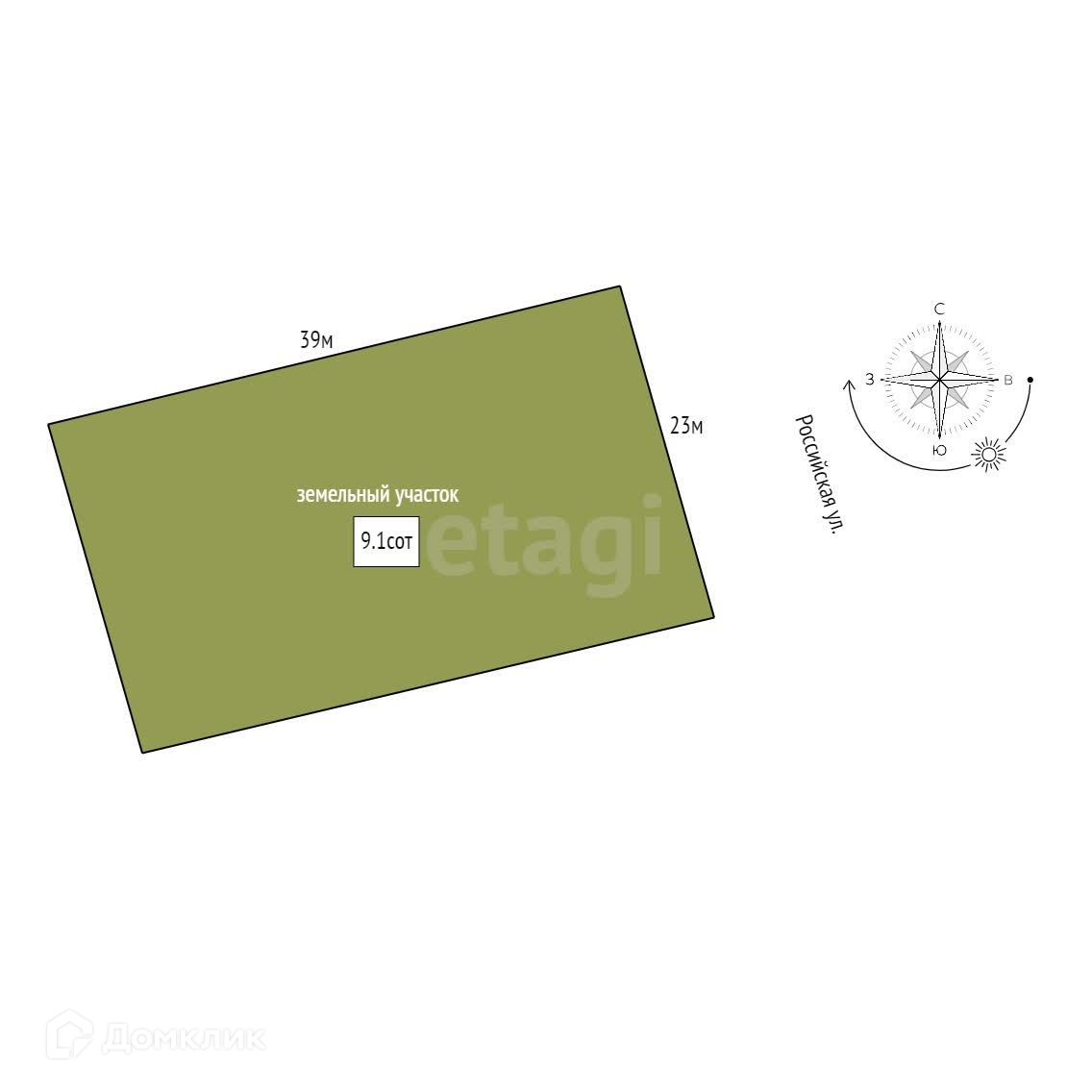Площадь участка 9,1 сот