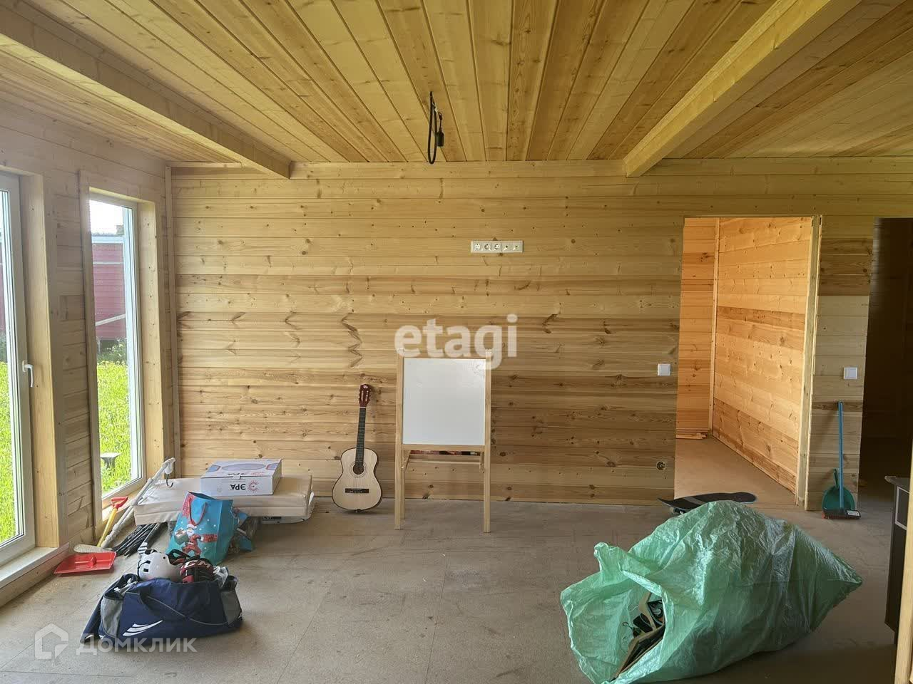 Дом одноэтажный, снаружи и внутри отделка имитация бруса. Утепленные пол и потолок.