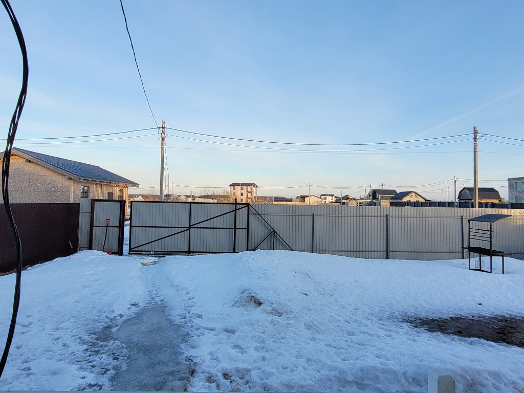 Территория домовладения огорожена забором из профилированного листа на ленточном фундаменте с откатными воротами.