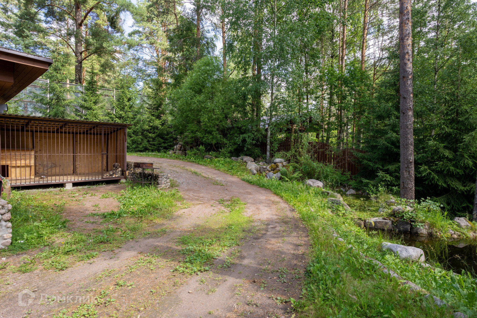 на участке отдельно построен гараж, котельная и навес на два автомобиля, вольер