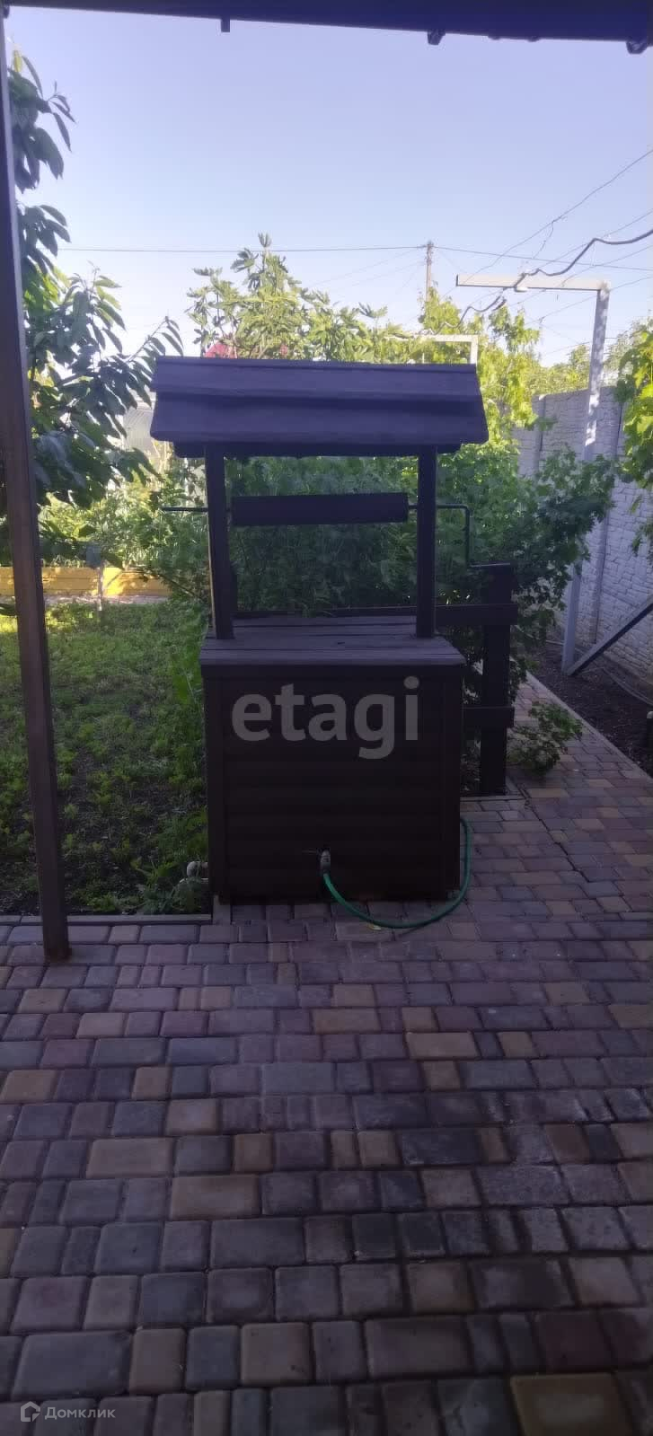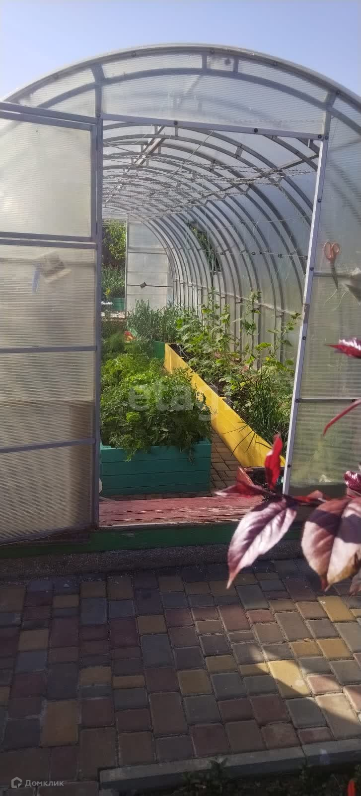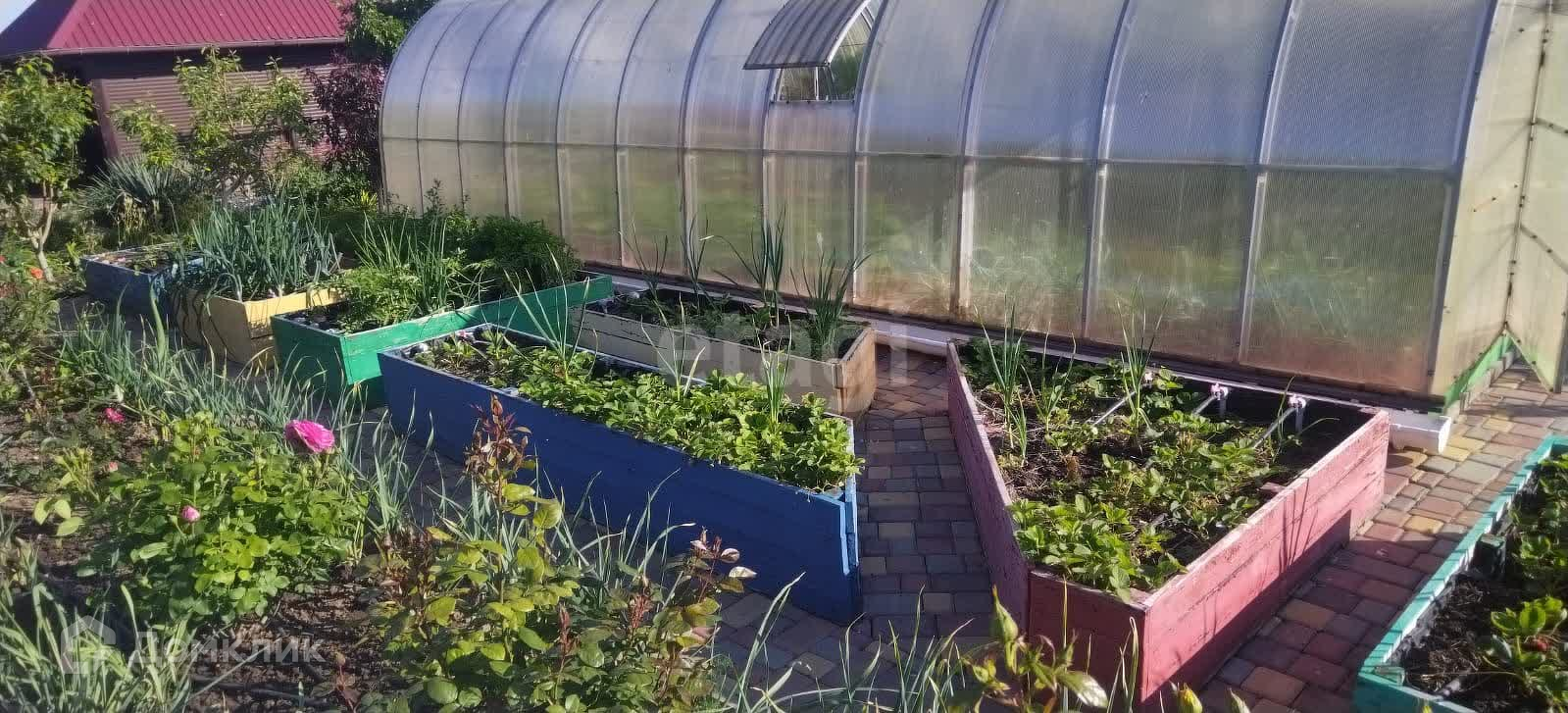 По середине участка установлена теплица из кровельного поликарбоната. Пробурена своя скважина.
