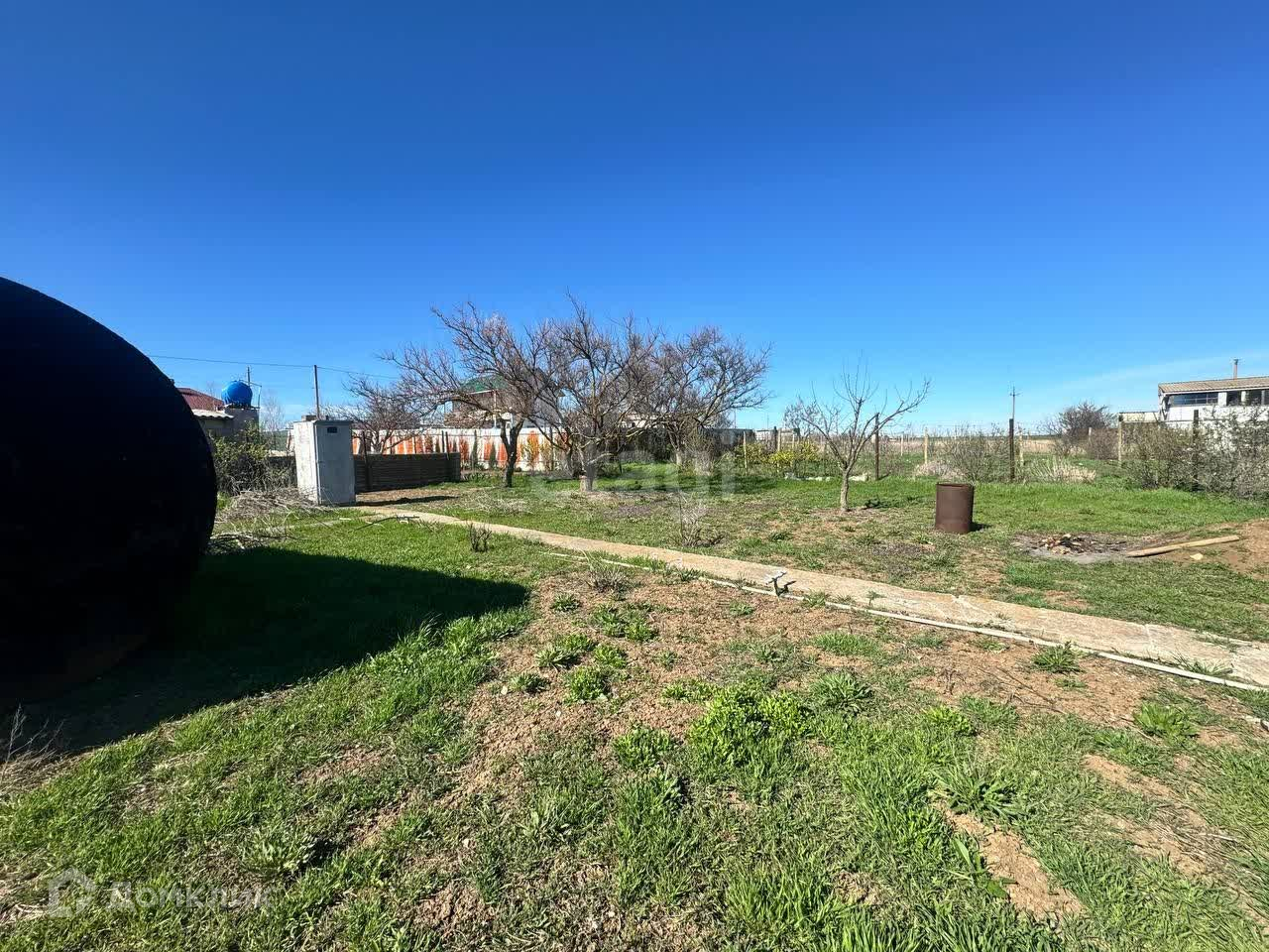 От калитки идет бетонная дорожка по всему участку, есть дополнительно к централизованному водоснабжению (от пгт.Мирный) есть скважина, бытовка на участке со светом. До моря дорога 1,5 км по прямой, отсыпана ракушечником.