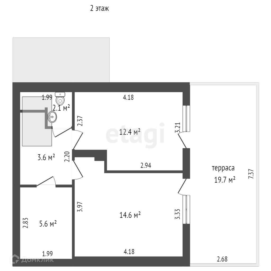 На втором этаже две спальни, санузел, подсобное помещение. Из каждой спальни есть выход на просторный балкон, на котором можно расположить место для отдыха.