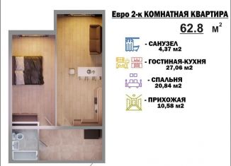 2-комнатная квартира на продажу, 63 м2, улица Гаджимагомедова, 1к1