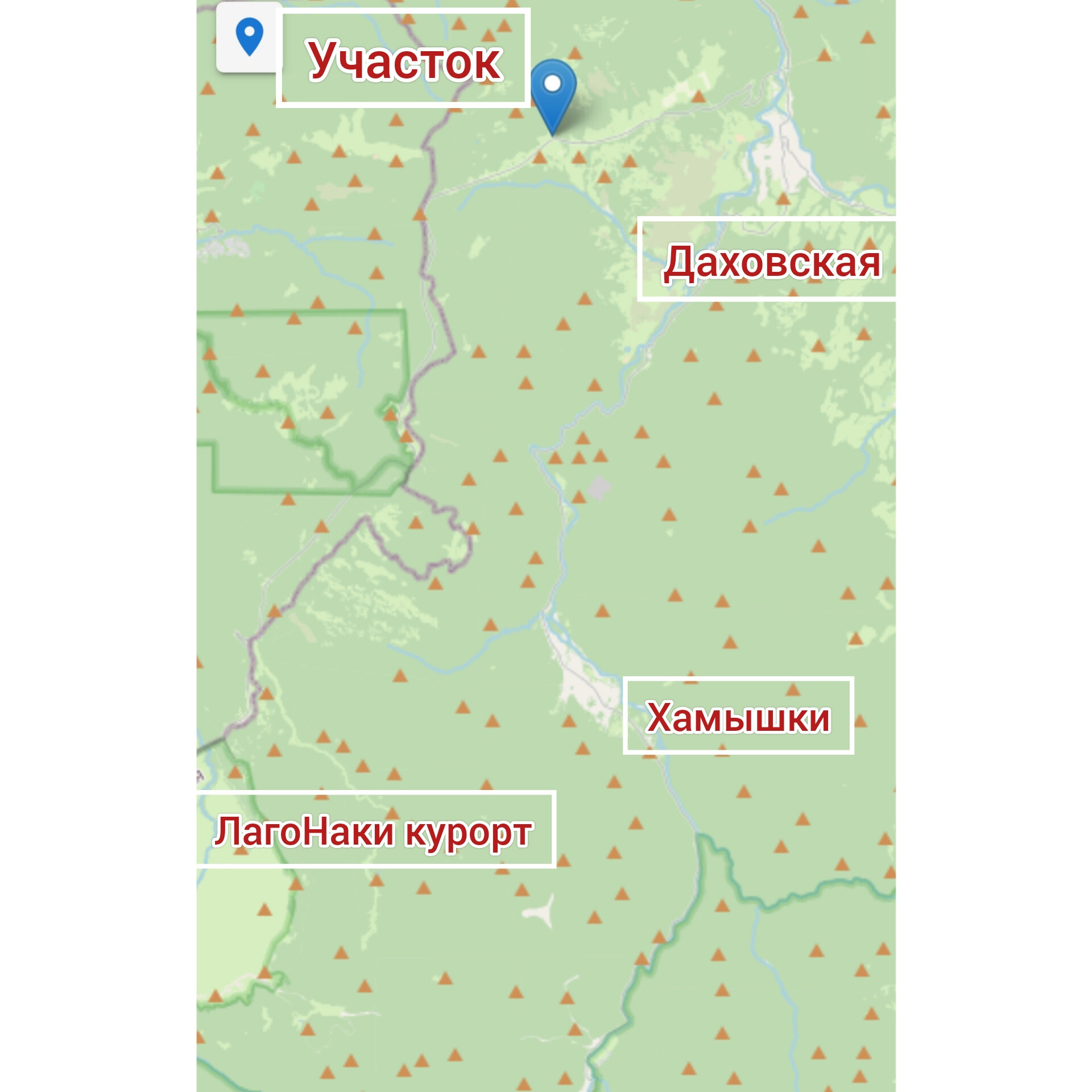 Адыгея, ст-ца Даховская, ЛагоНаки. От трассы ЛагоНаки 10 метров, до поселения Даховская 11 км.