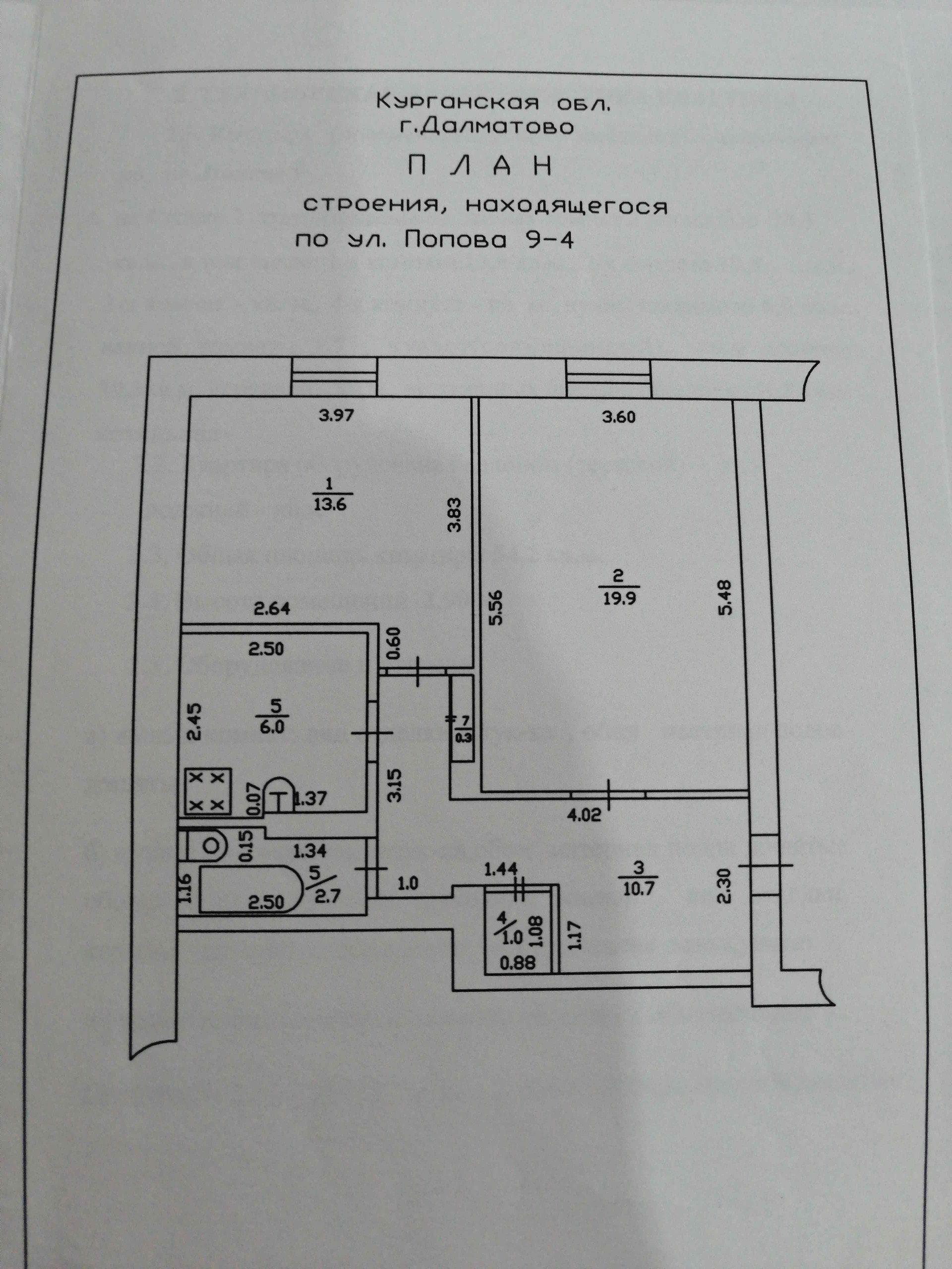 2-комнатная квартира, 54.2 м2, этаж 1 / 2, на продажу в Далматово, улица Попова, 9