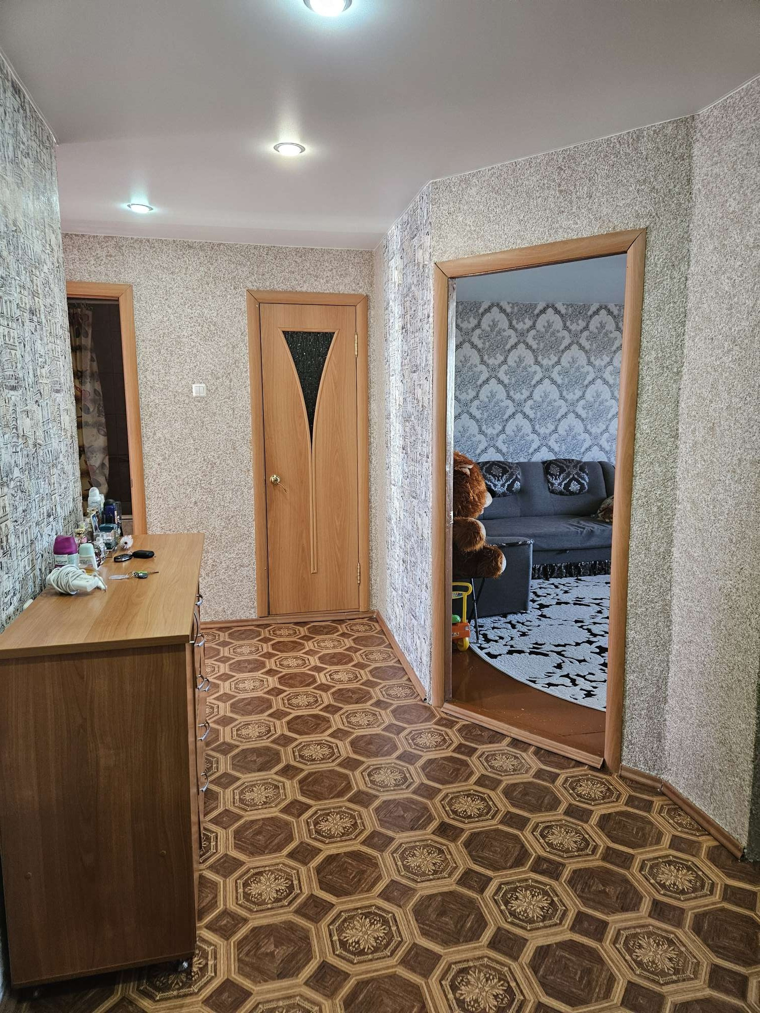 Продам не угловую 3-х комнатную квартиру на 1 этаже, косметический ремонт, натяжные потолки, остаётся кухня, встроенный шкаф, мебель частично. Торг.