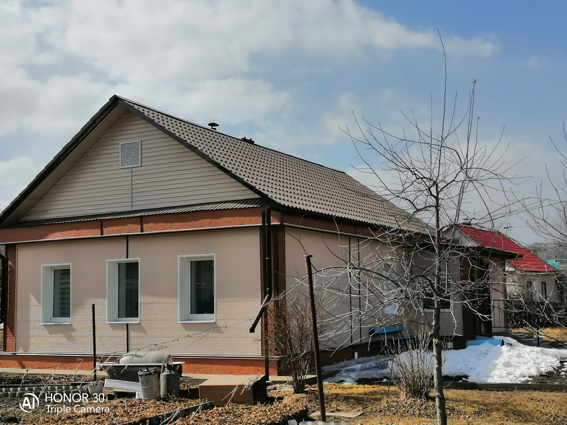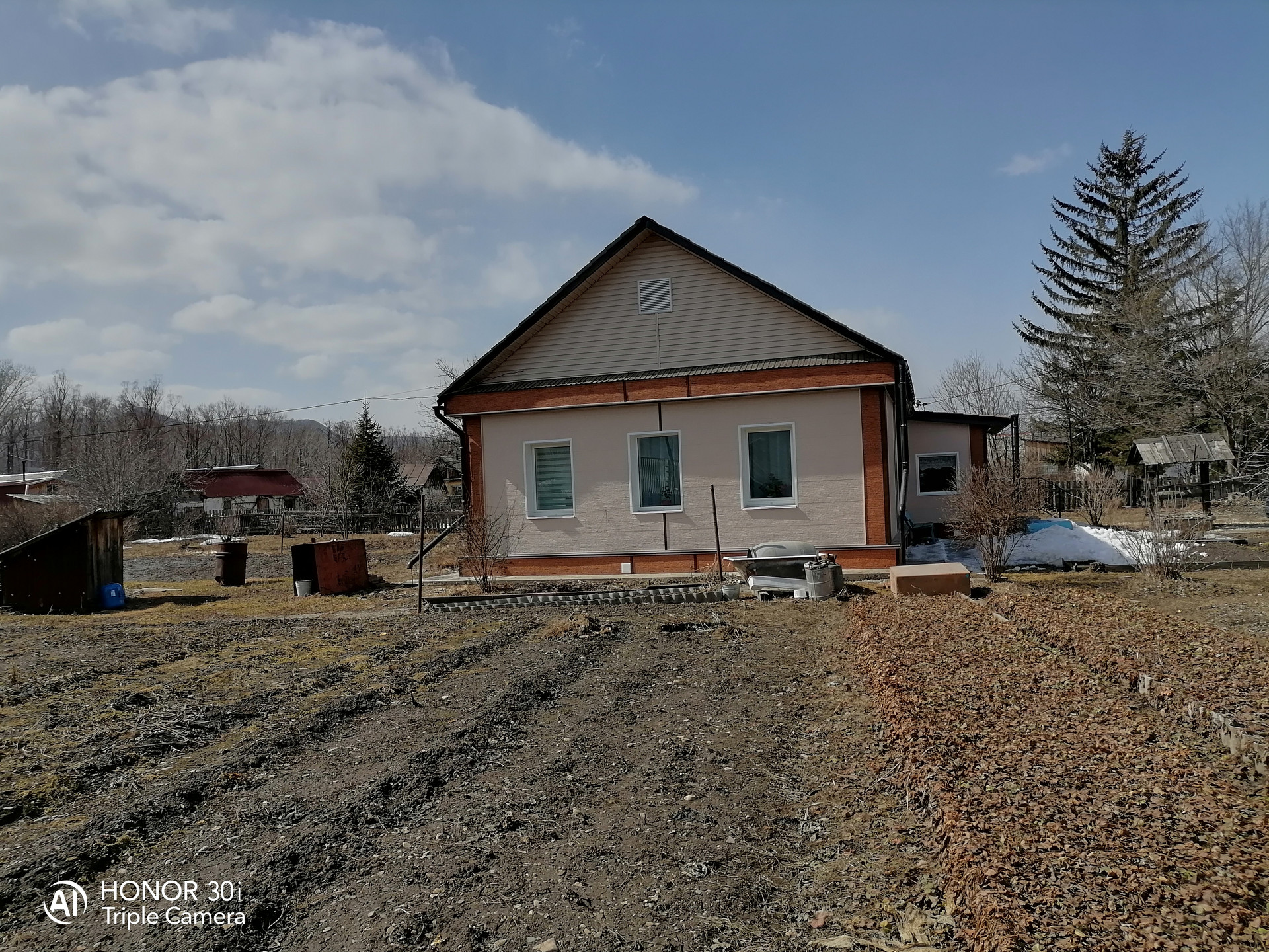 Дом шлакозаливной, наружная сторона дома обшита ханье.