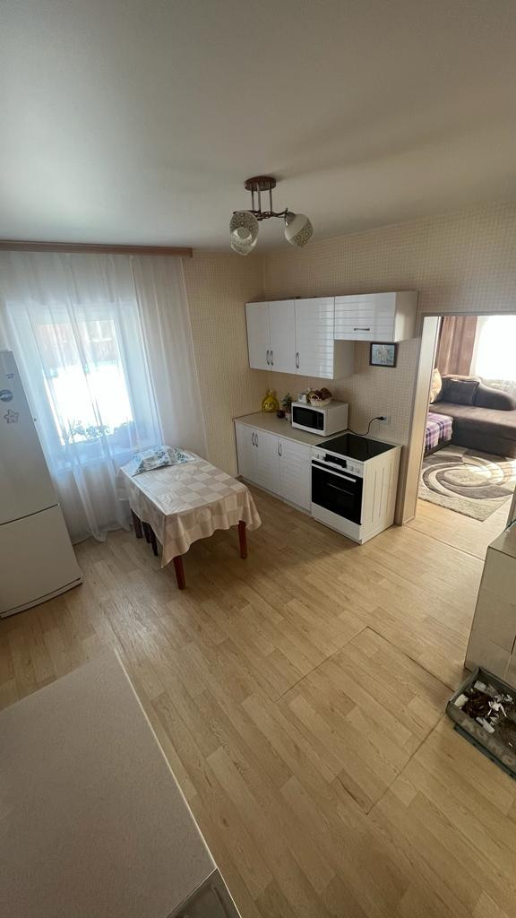 Из мебели остается шкаф-купэ, водонагреватель фирмы "аристон", кухонный гарнитур.