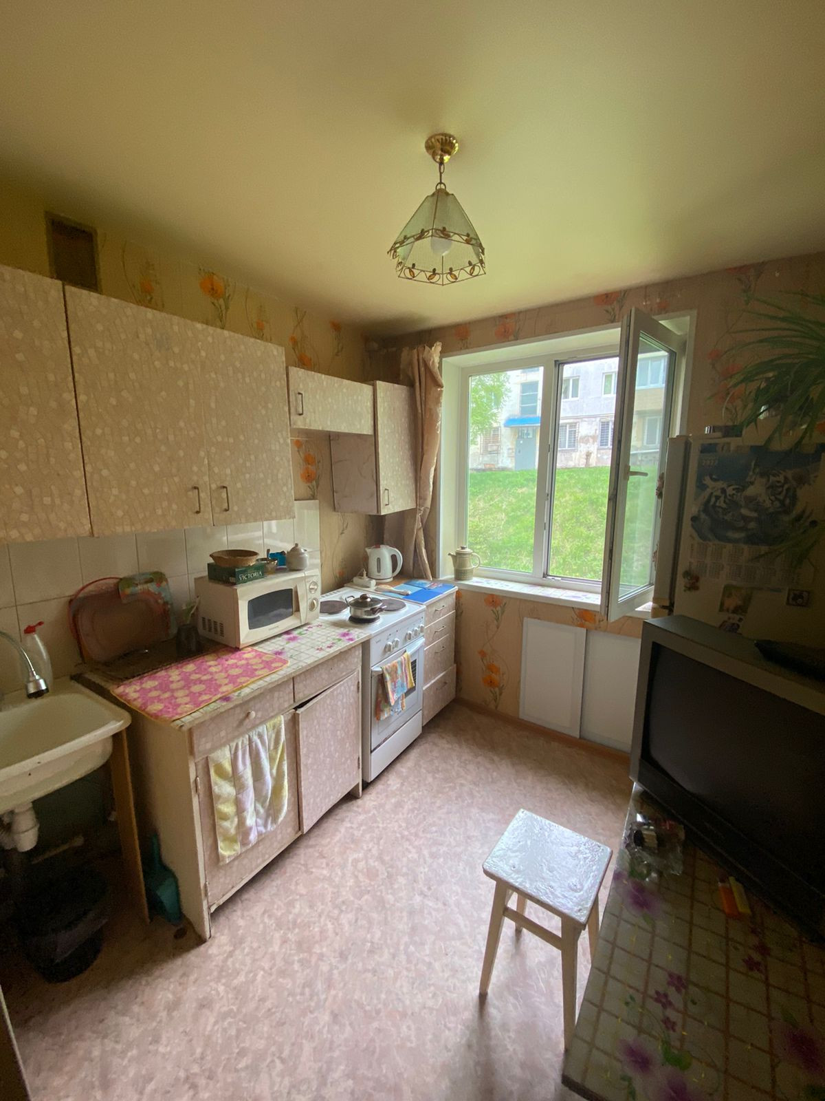 1 комнатная квартира старой планировки, 1 этаж, район Горбуша, установлены новые радиаторы, железная дверь, пластиковые окна, натяжной потолок, сан. узел "под ключ", по всей квартире линолеум, меж. комнатная дверь.