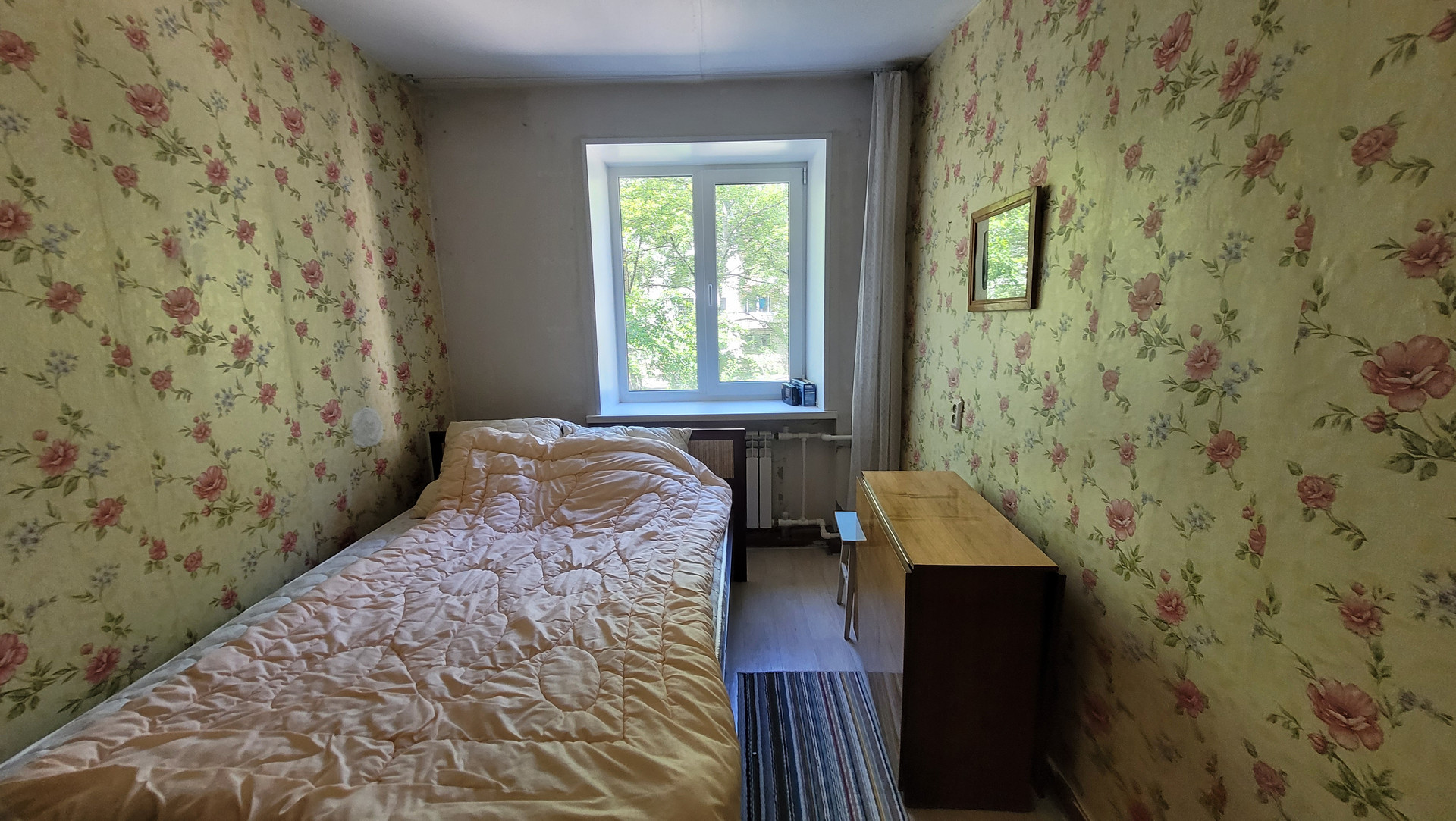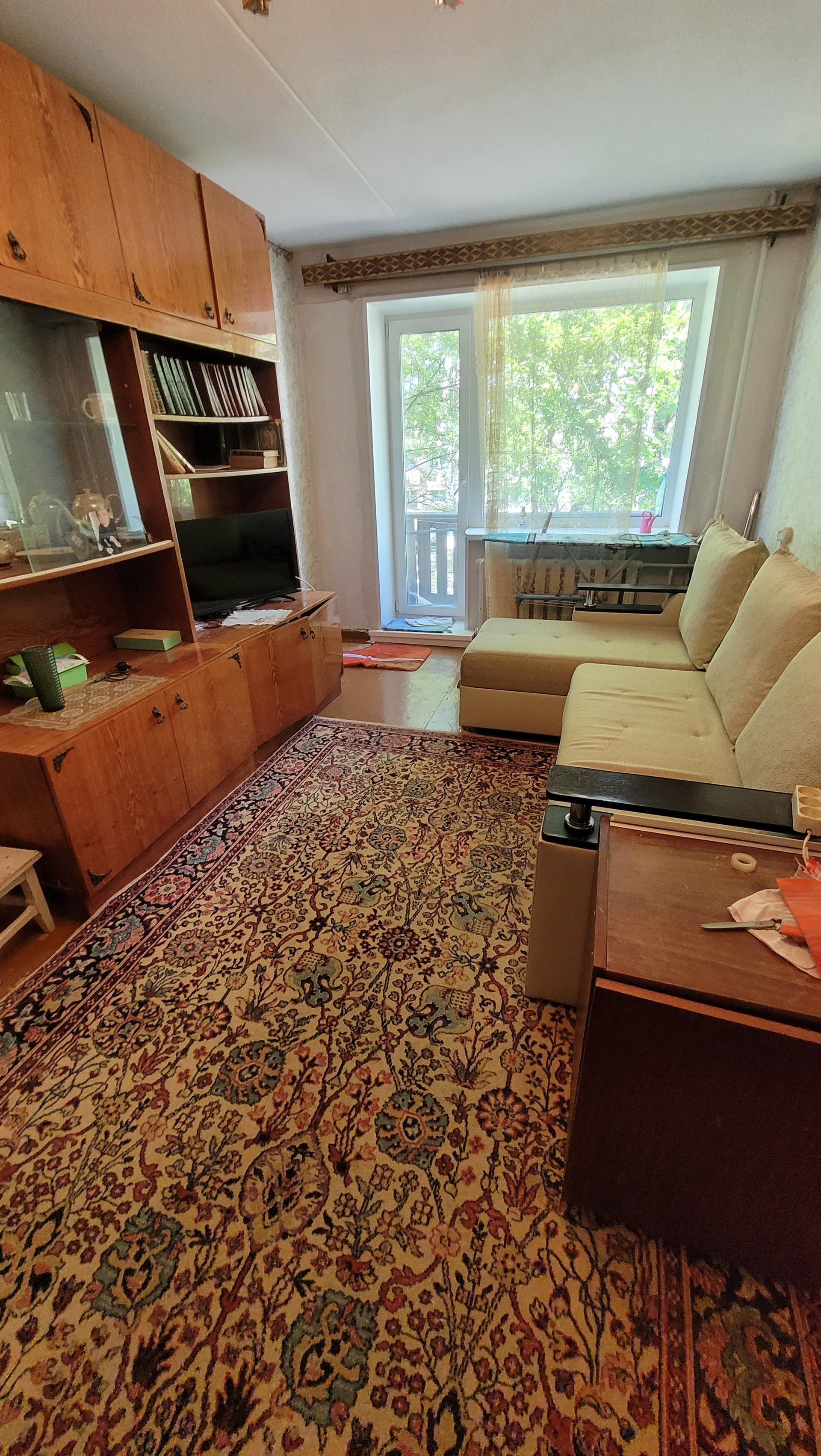 Вся мебель и бытовая техника, представленная на фото, кроме дивана и холодильника, остаётся.