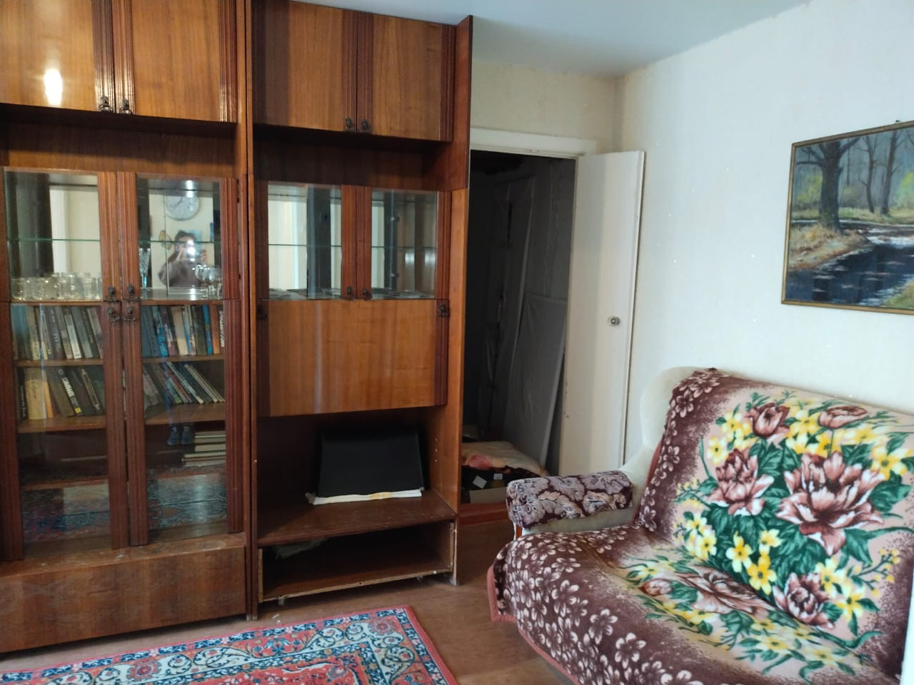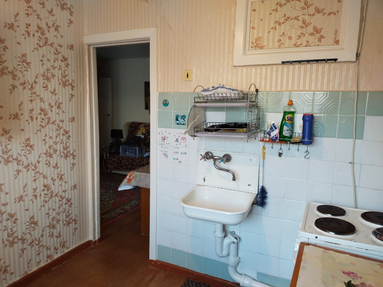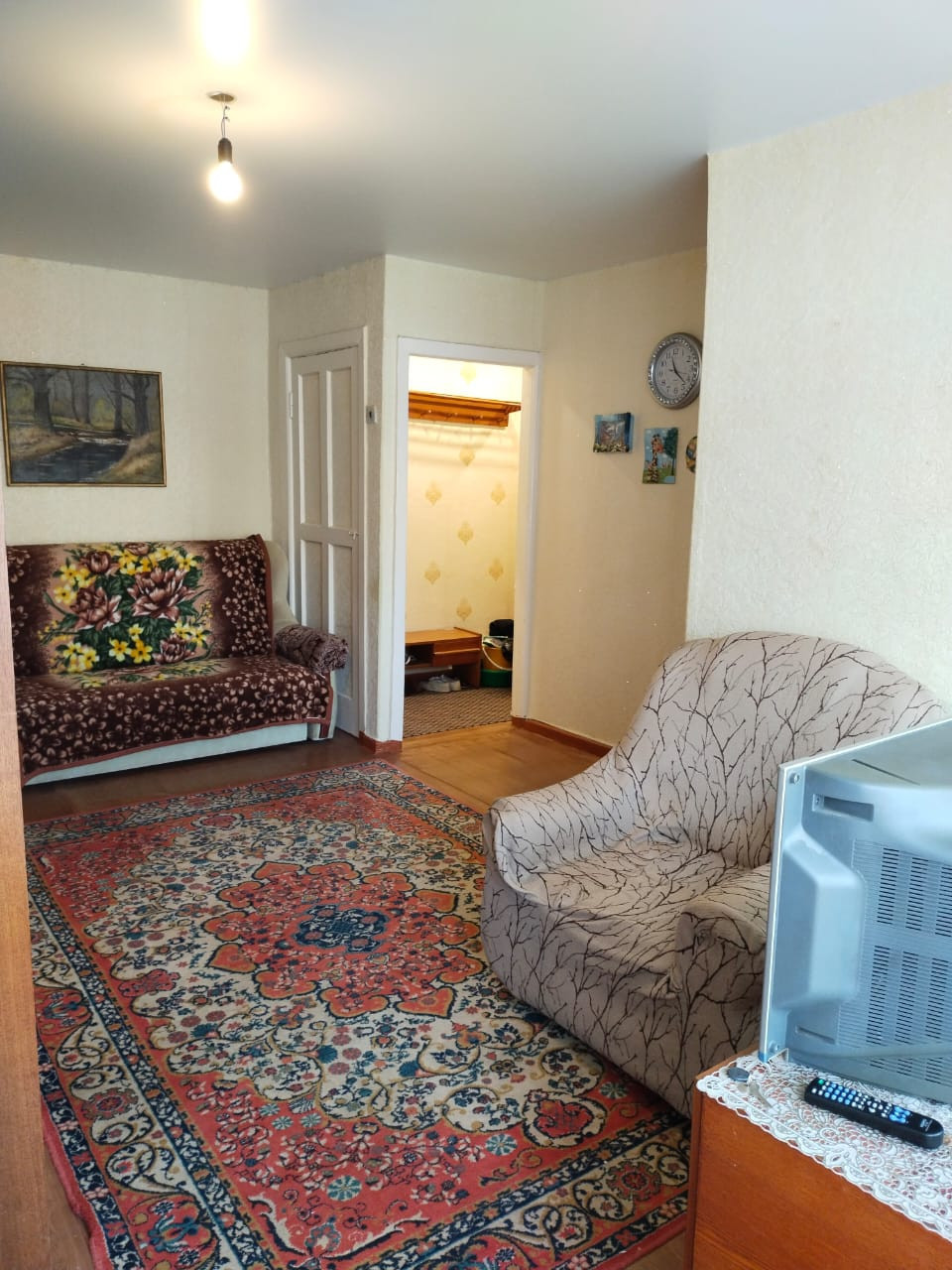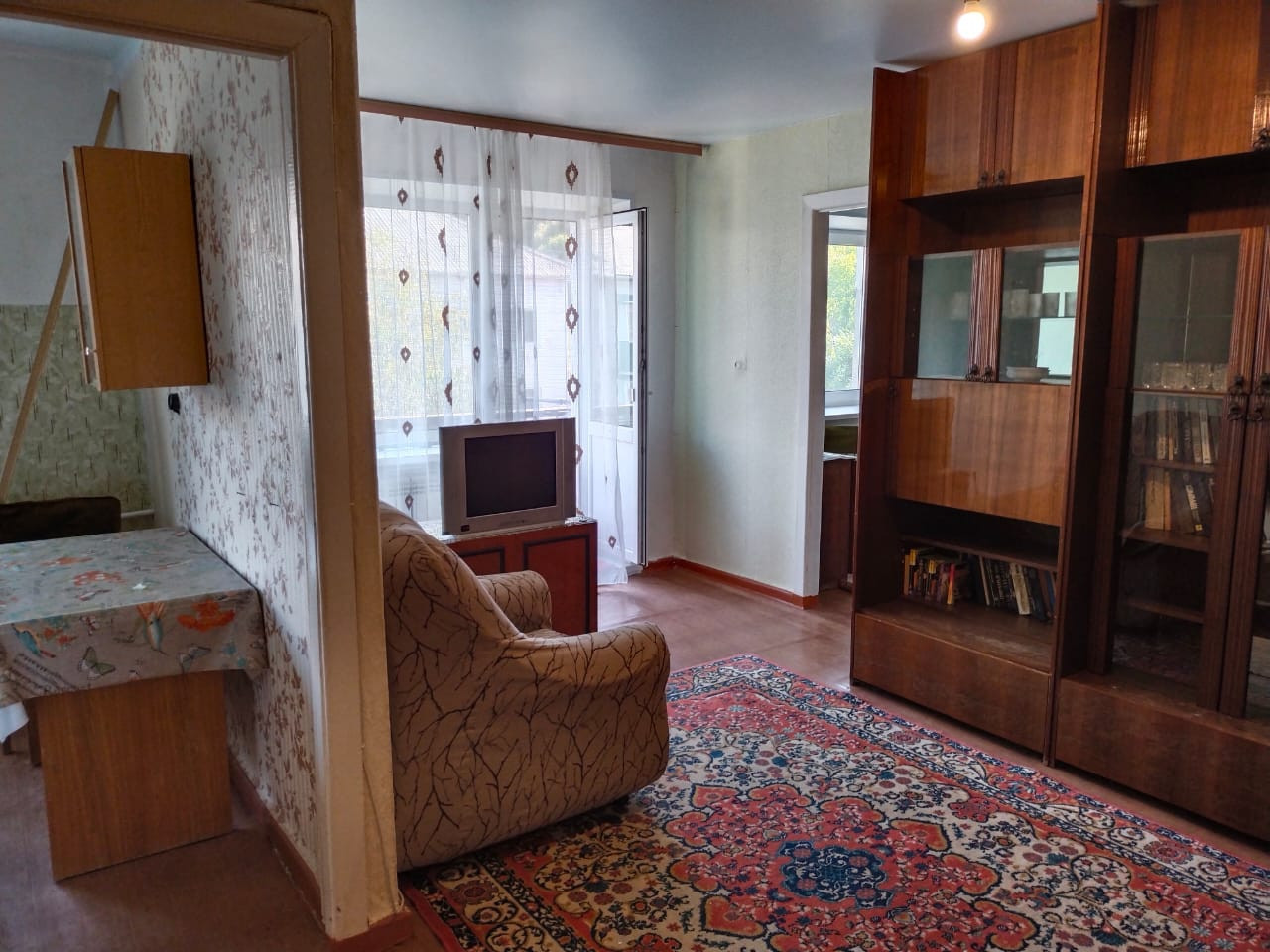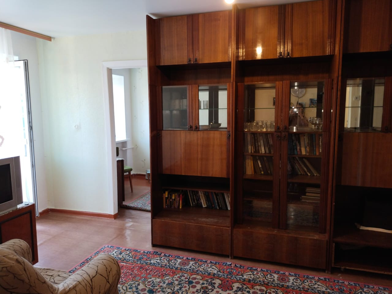 Ленолиум постелен в зале, прихожей и спальной комнате.