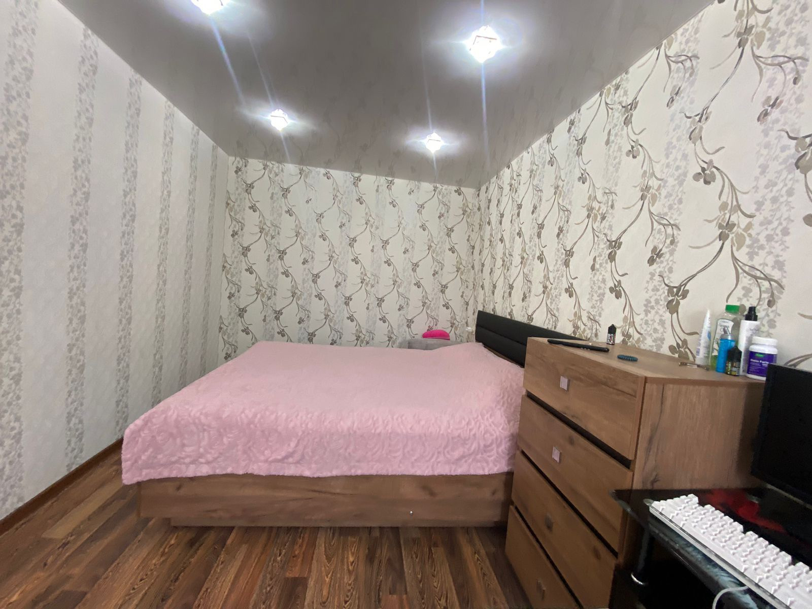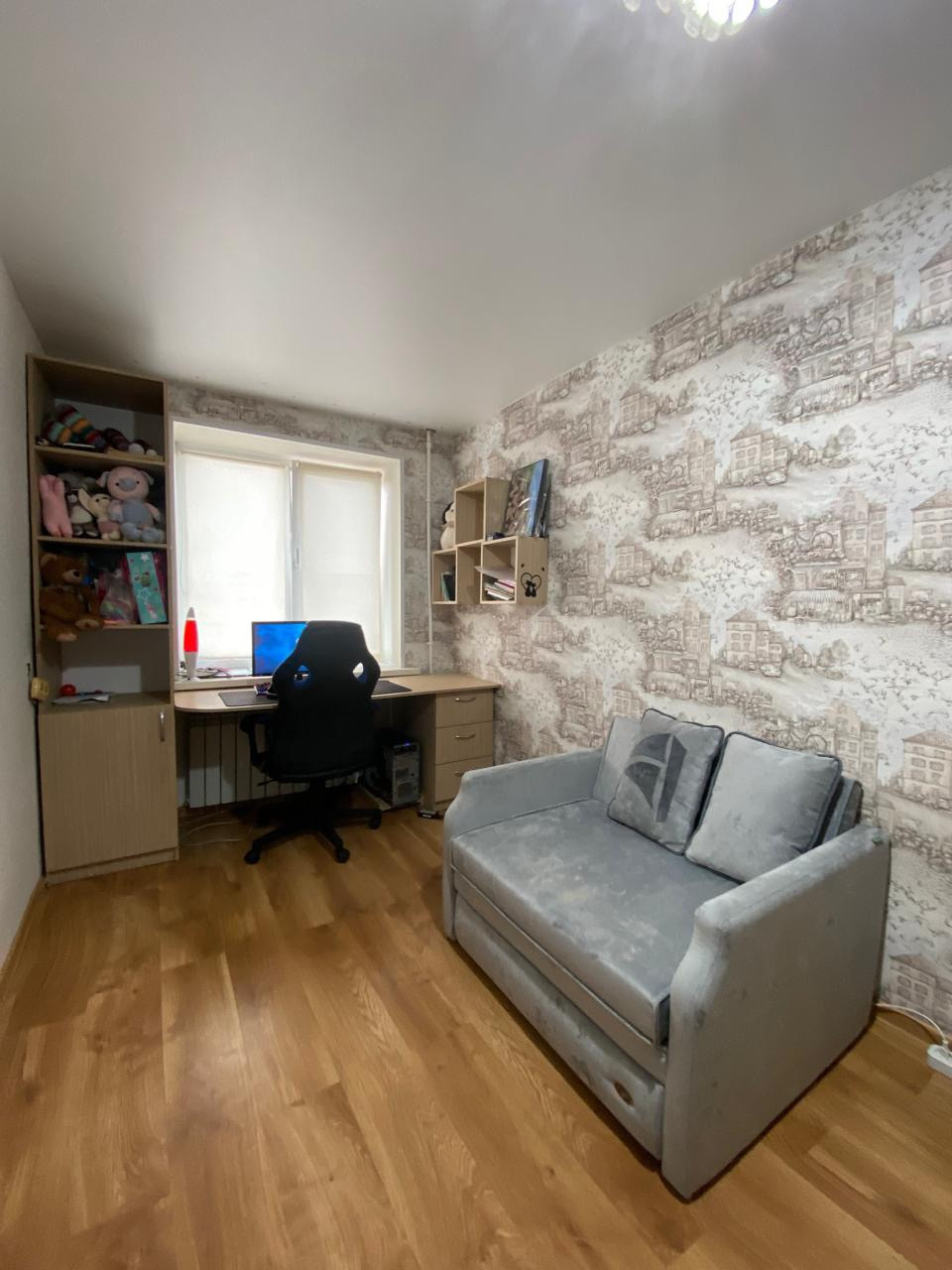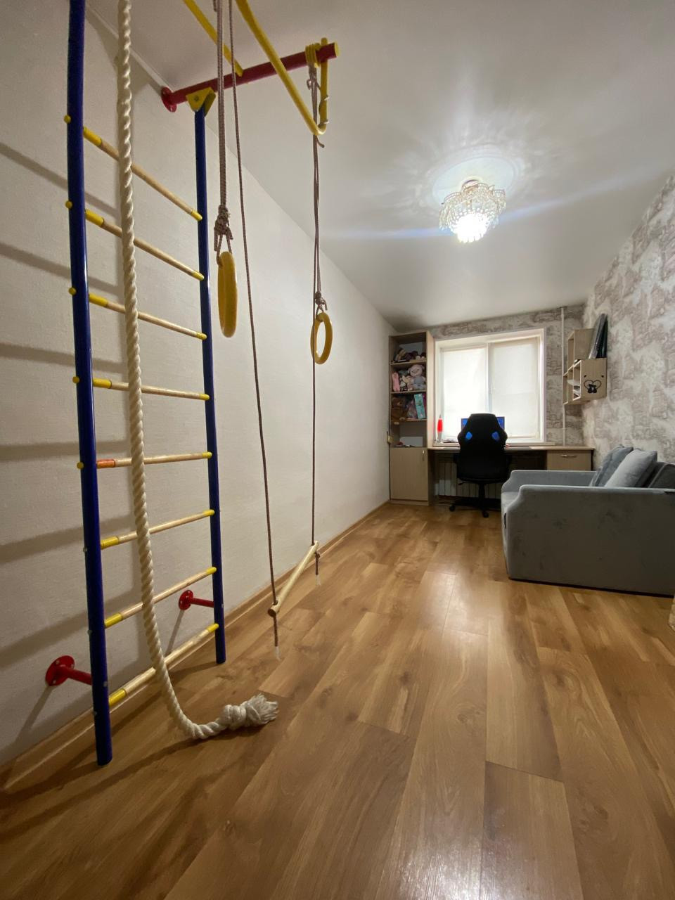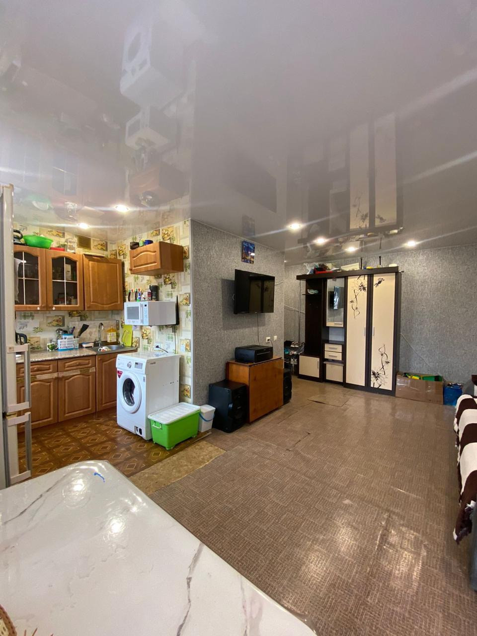 Очень просторная, Выполнена перепланировка кухня+гостиная. Установлены пластиковые окна, межкомнатные двери, входная металлическая дверь, балкон остеклен и выполнена отделка пластиковыми панелями. Санузел совмещен, сантехника в отличном состоянии. Заменены радиаторы, электропроводка. Стены выровнены, натяжные потолки, софиты, в двух комнатах ламинат.