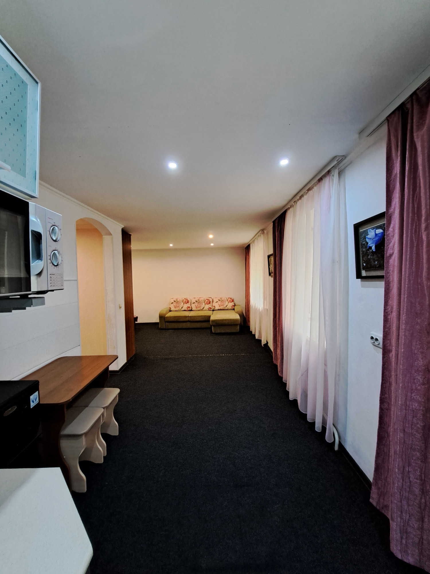 Заменены все коммуникации: водоснабжение, канализация, электропроводка, новые радиаторы, установлены счетчики, пластиковые окна, софиты по всей квартире.