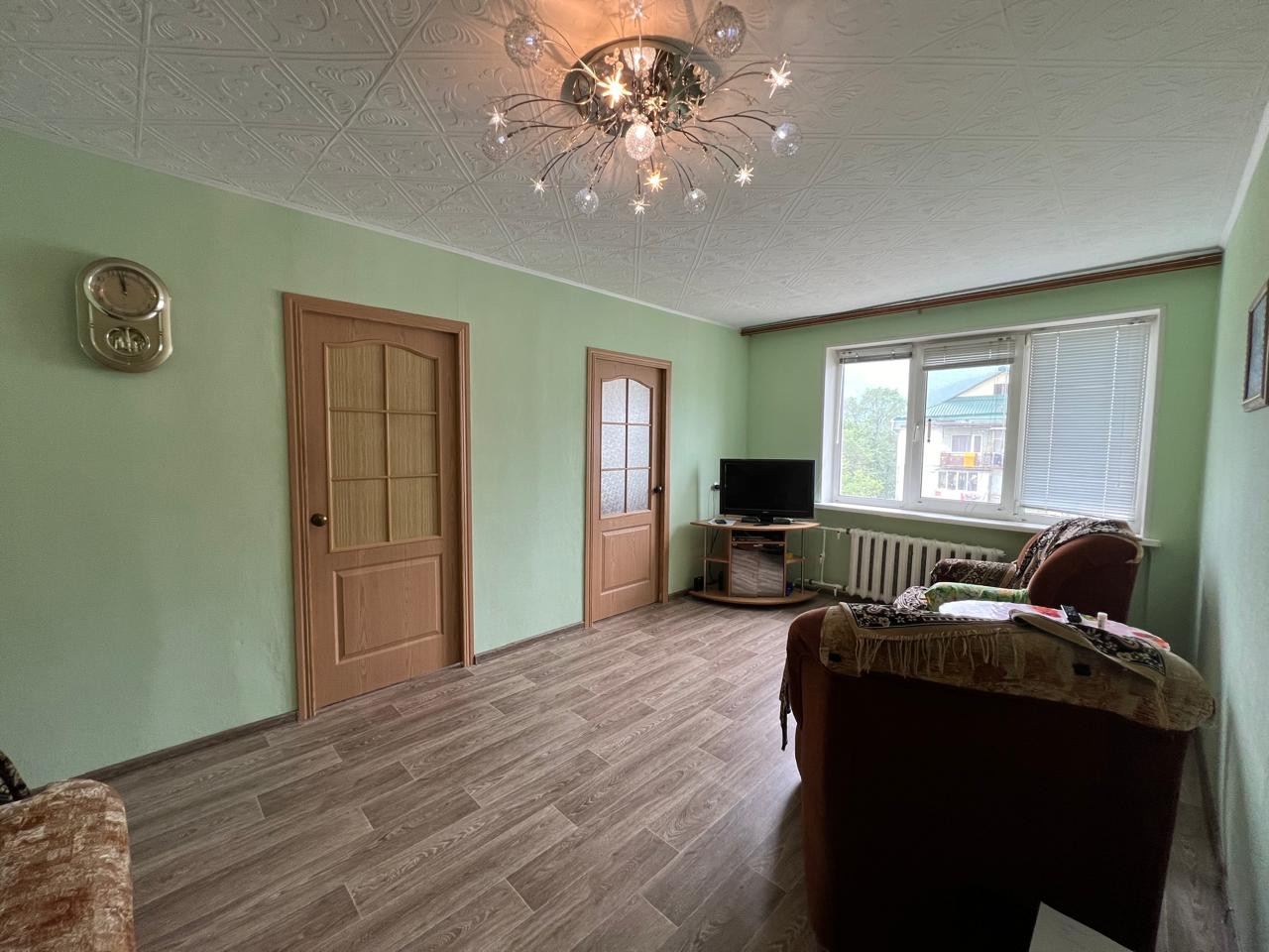 Предлагается к продаже 4-комнатная квартира старой планировки расположенная на 5-ом этаже пятиэтажного здания в районе Горбуша. Квартира с хорошим качественным ремонтом,выровнены стены,потолок,пол-стяжка, сверху линолеум,заменена проводки,установлены пластиковые окна,новые радиаторы отопления,новые межкомнатные двери.Потолок плитка. Сан.узел совмещенный ,отделан кафелем.Балкон застеклен.Чистый ,ухоженный подъезд,облагорожена придомовая территория,рядом находится детский садик и парковка.