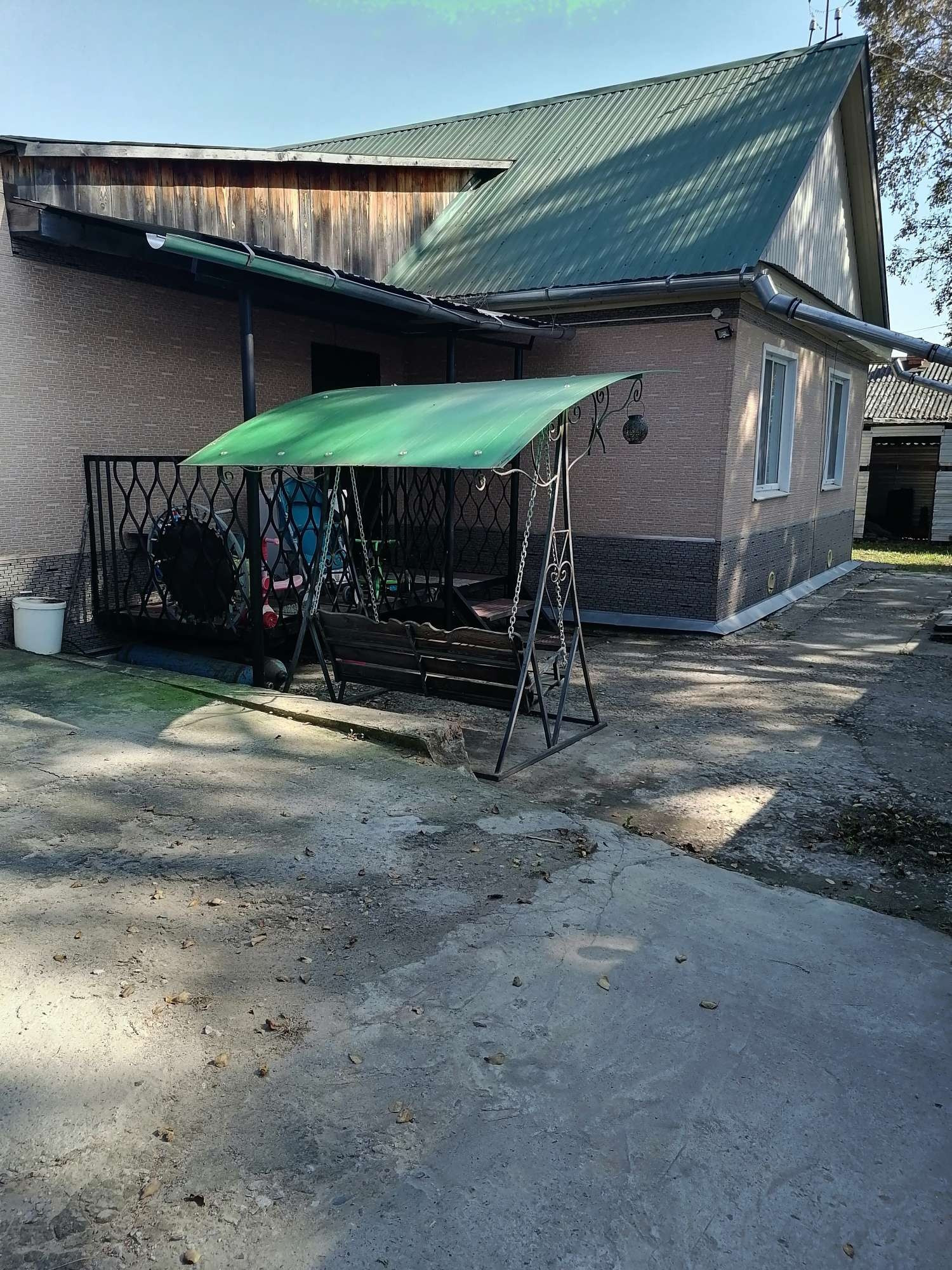 На территории: гараж, место для хранения дров и угля, беседка.