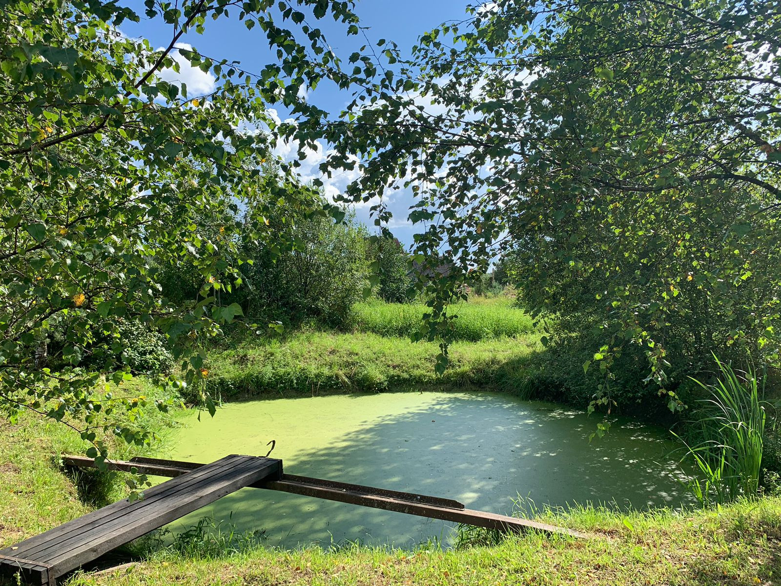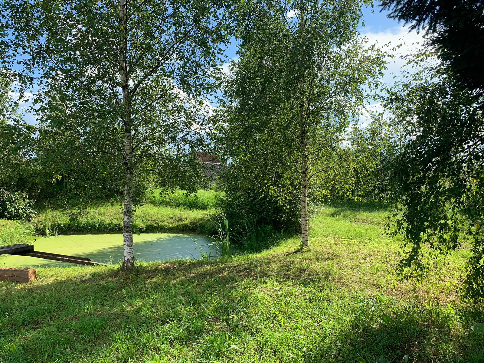 Рядом с домом расположен пруд с индивидуальным парковочным местом