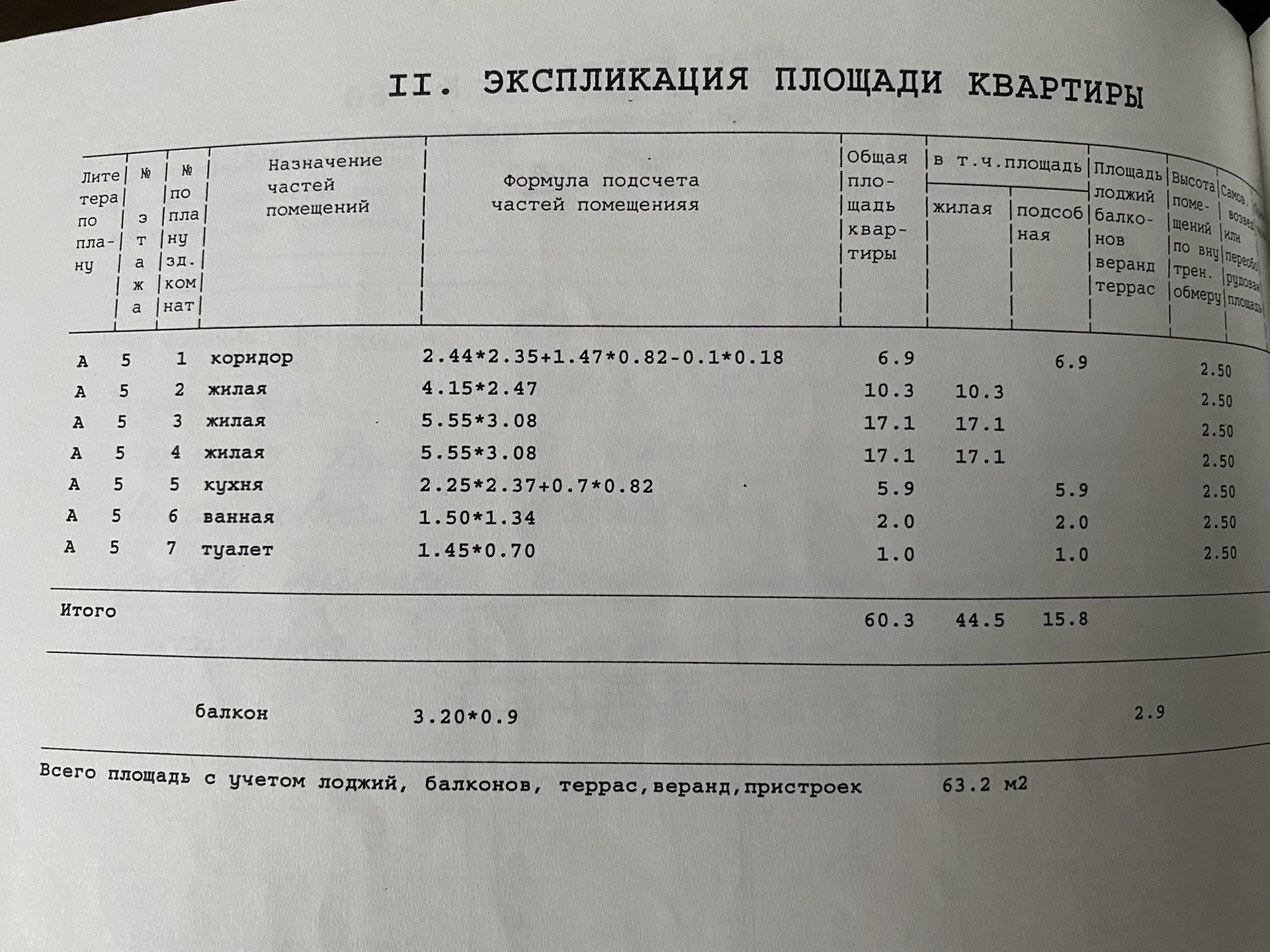 Общая площадь 63.2 м2