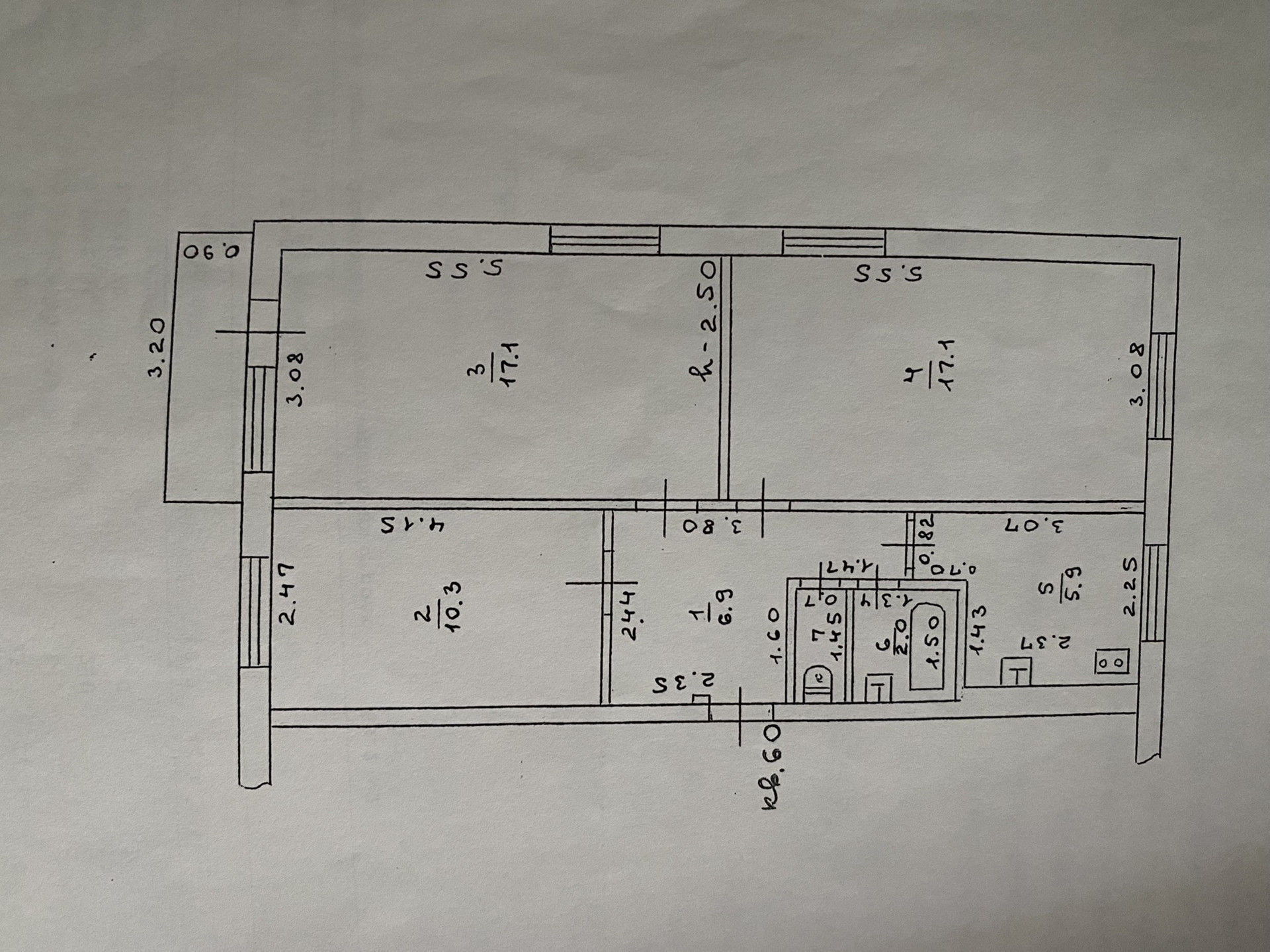 Жилая площадь 60.3 м2
