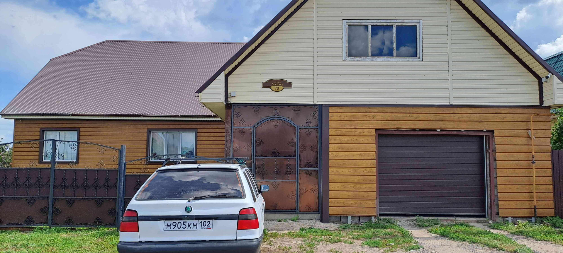 В связи с переездом продам дом 102 кв. м,  две спальни, большая кухня и зал, терасса 20 кв м. гараж на 2 машины. Дом из бруса ,одноэтажный, вход в дом закрыт, газовое отопление и центральное водоснабжение, утеплен и обшит металло сайдингом. имеется баня с большим предбанником. Есть погреб. Плодовые насаждения и кустарники. Теплица 8 метров. Всё готово для комфортного проживания.