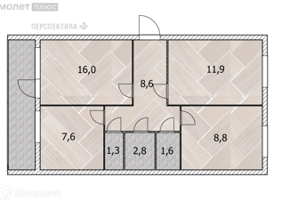 Общая площадь: 57.6 м2