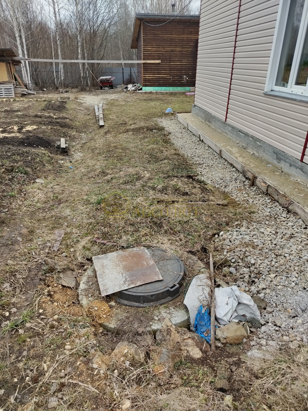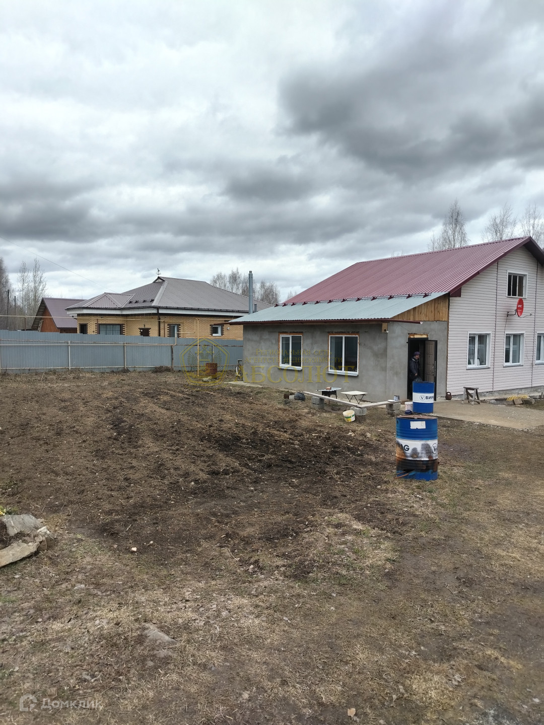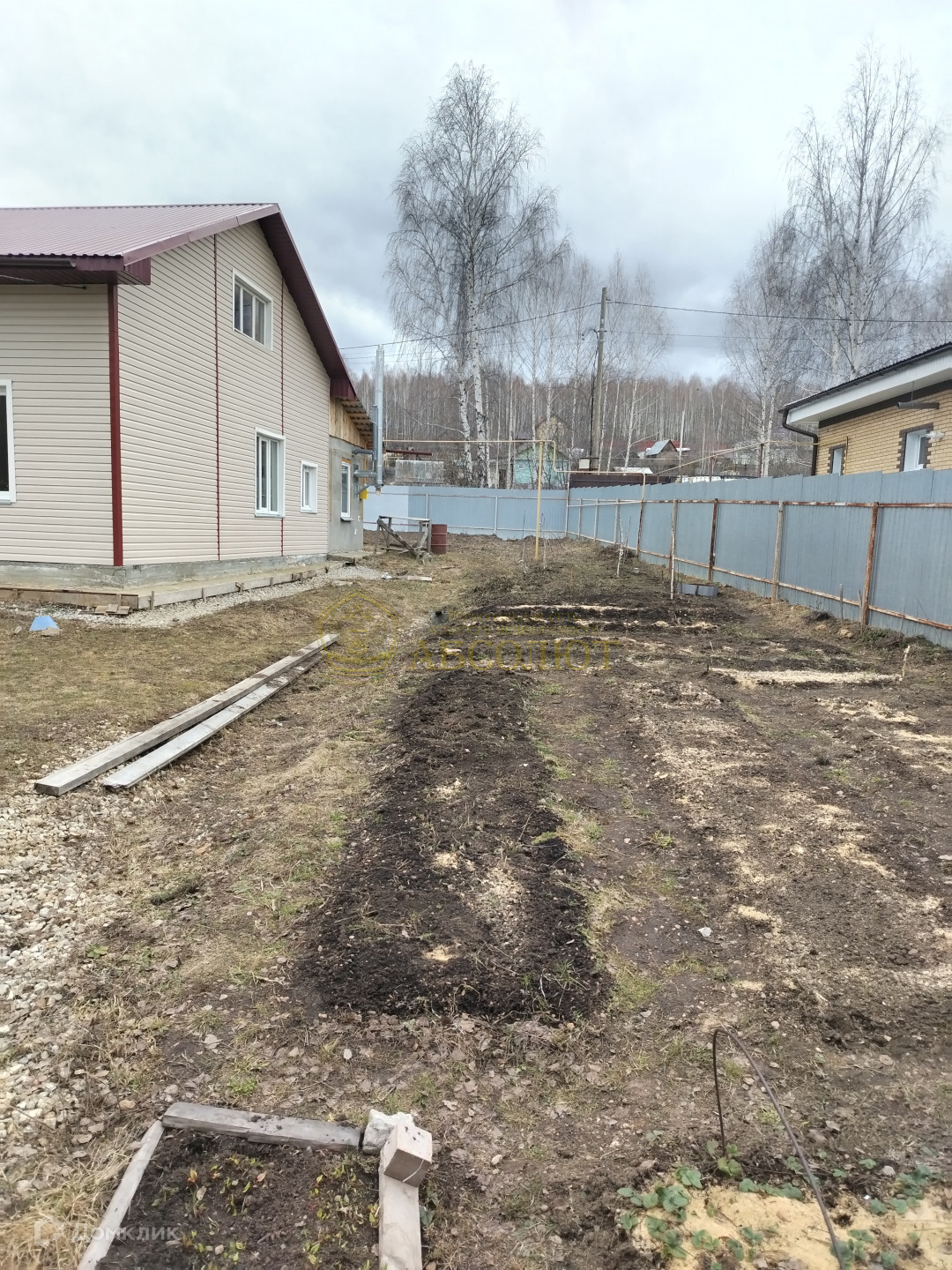 По всему периметру участок огорожен забором. Есть сарай для хоз.инвентаря.