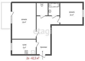2-комнатная квартира на продажу, 42.3 м2, улица Гагарина, 11