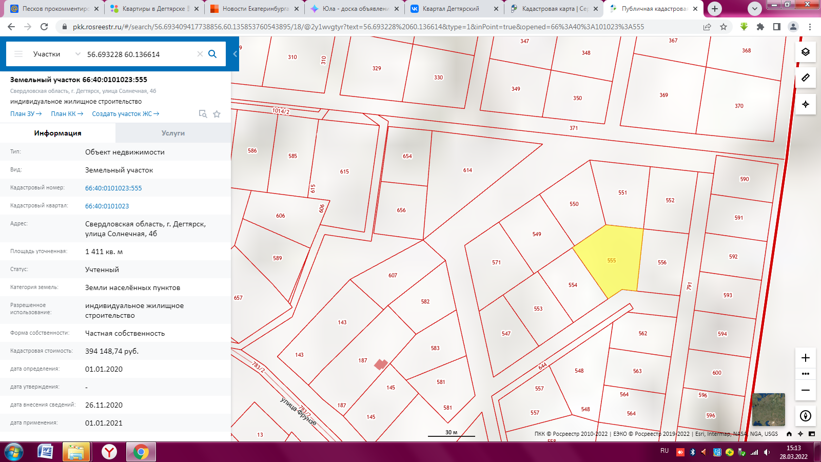 Продается земельный участок в г. Дегтярске, по ул. Солнечная, 15 соток в собственности, ИЖС. Электричество. На участке лес.